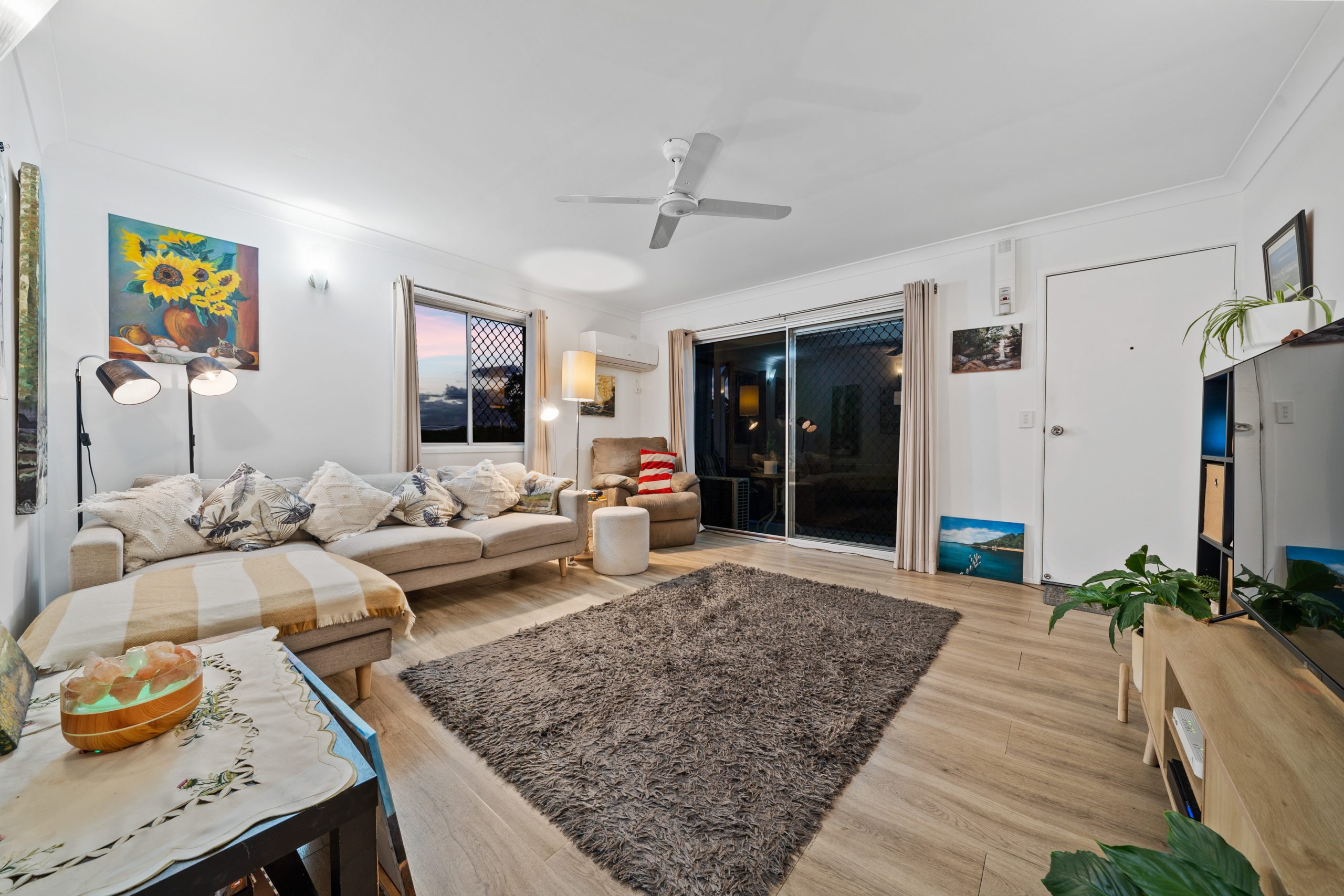 – Spacious, light filled living room with split system air-conditioning, and opening to a front balcony – perfect for morning coffee or evening wind downs.