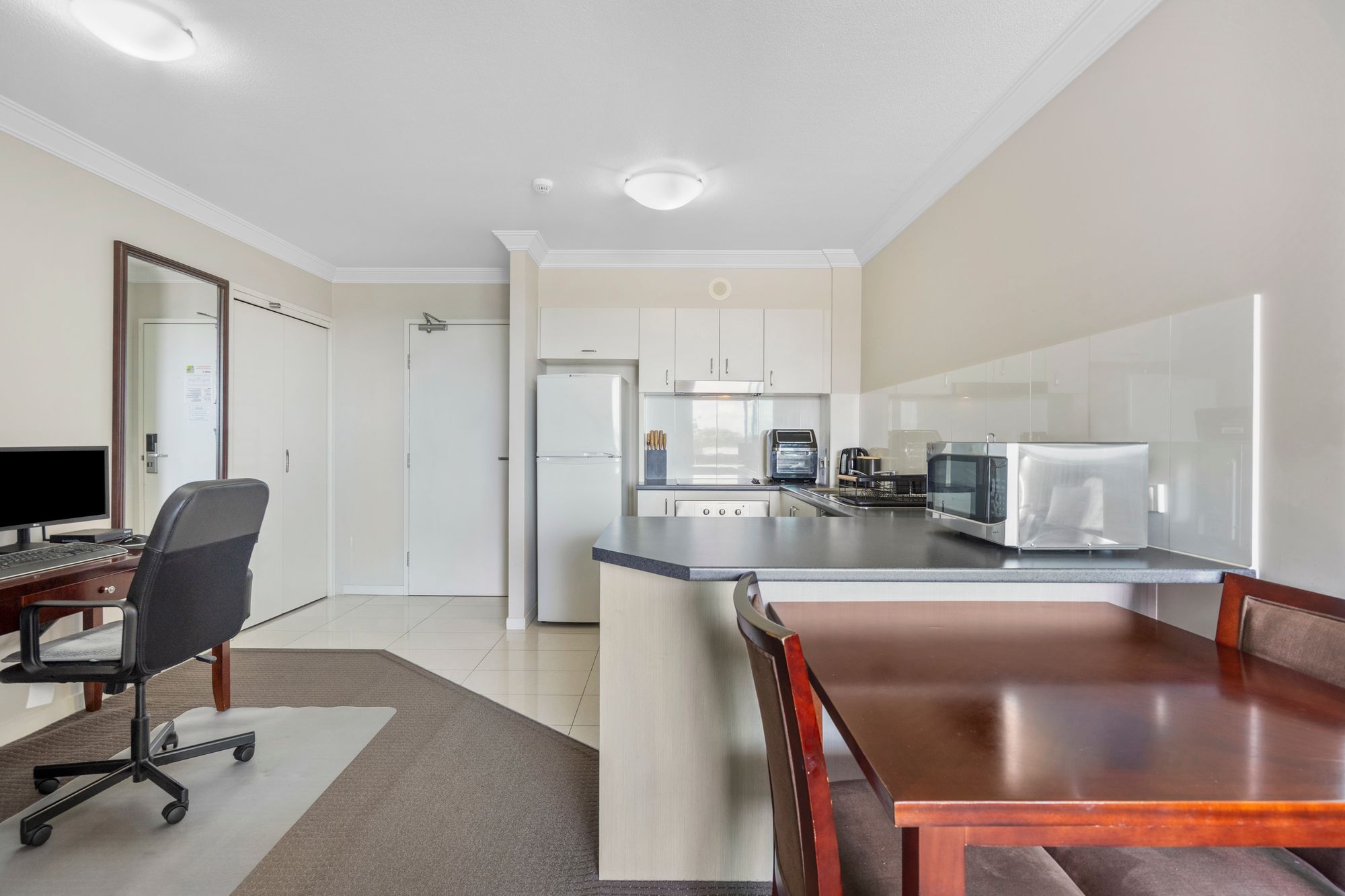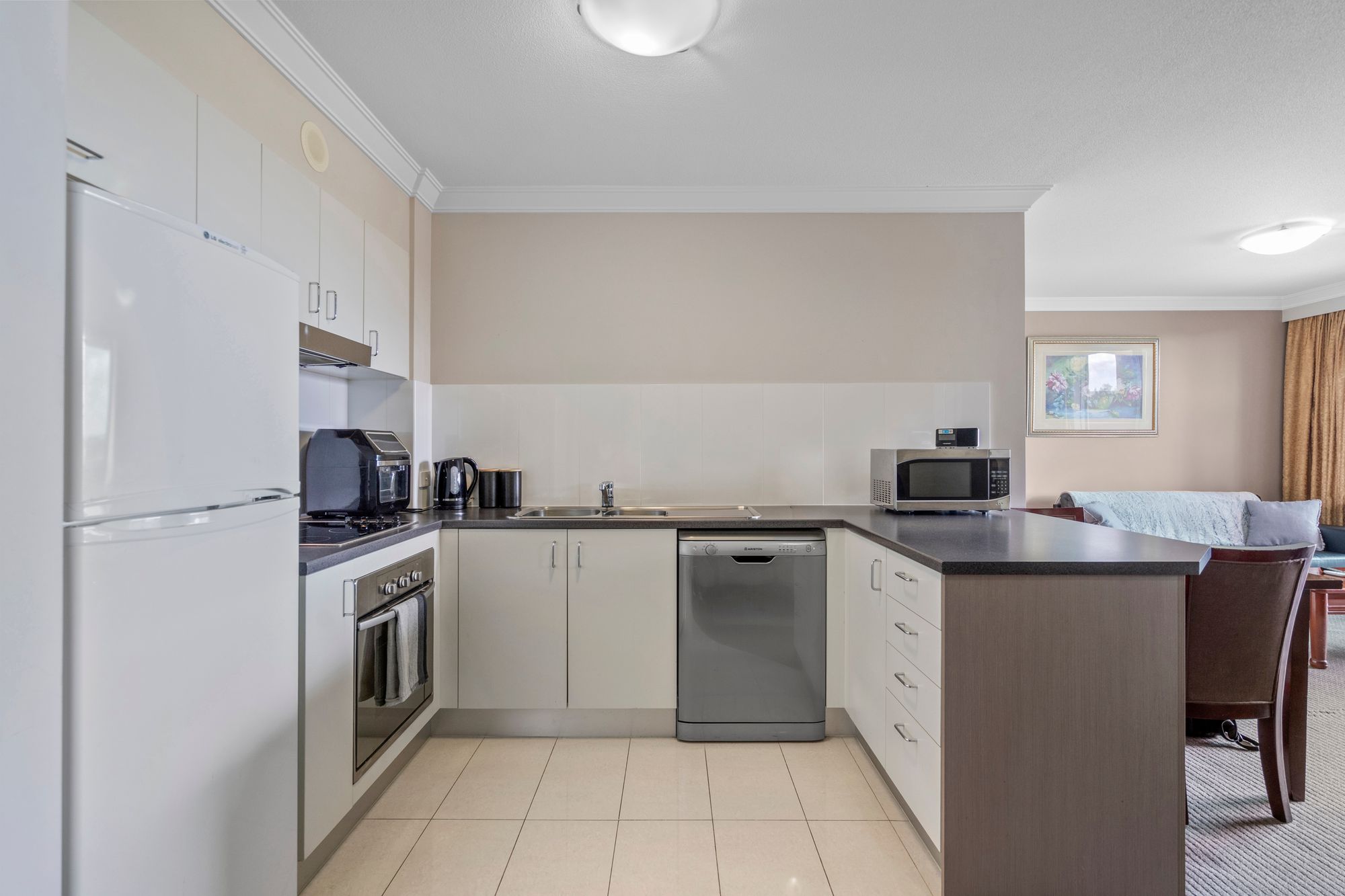 • Modern kitchen with quality appliances and ample storage including a dishwasher