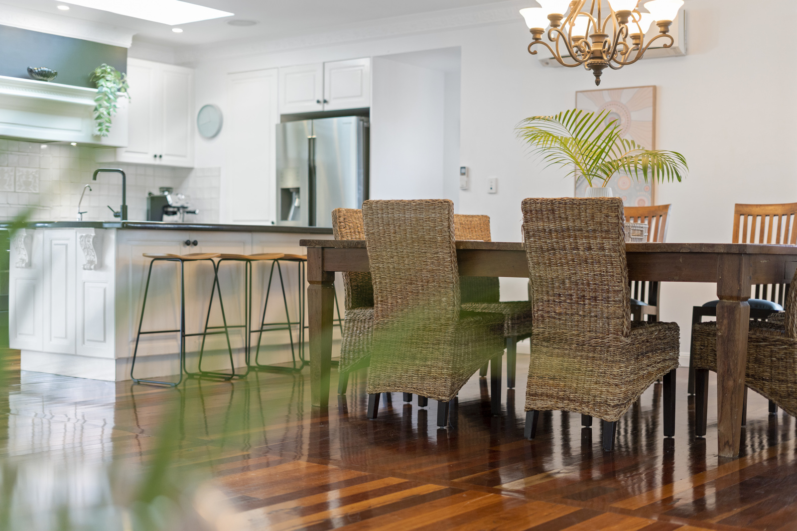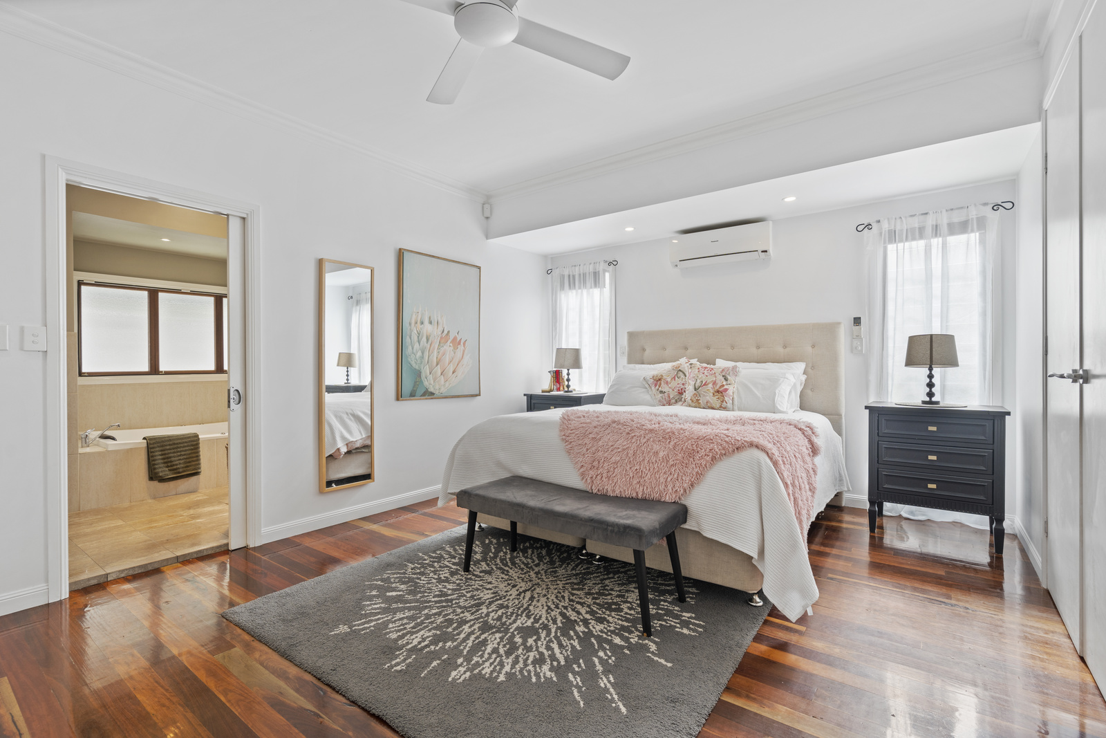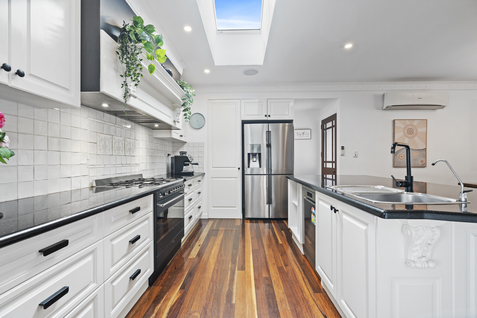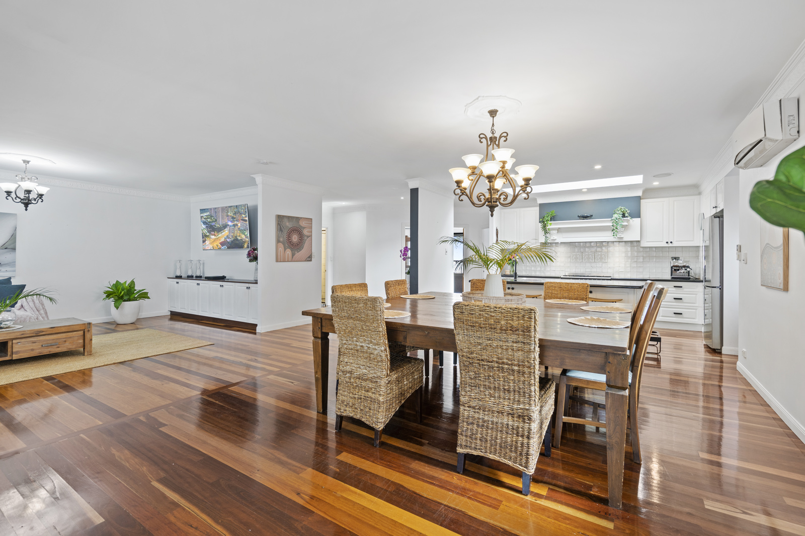 Traditional detailing blends effortlessly with stylish contemporary finishes throughout. Inside, an open-plan design living and dining spaces flow with ease, and the separate lounge providing a cosy space to relax and unwind. Air conditioning keeps the living areas cool through the heat of summer, while the layout encourages effortless indoor-outdoor living.