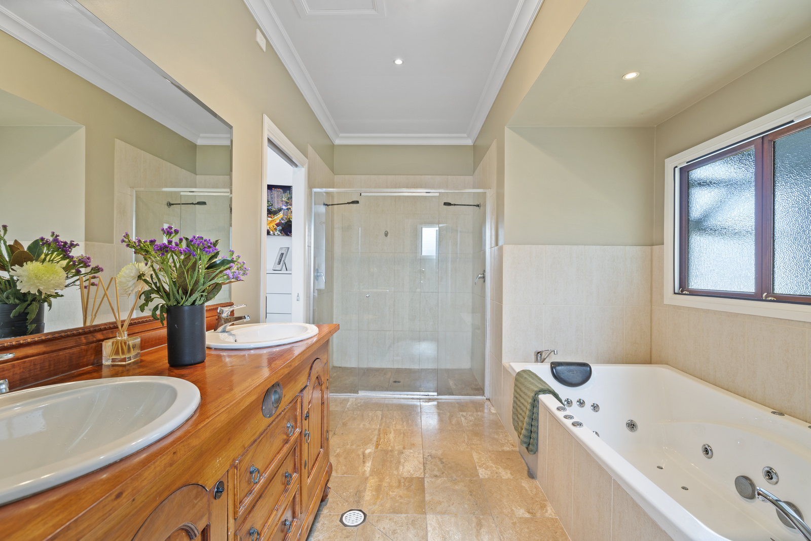 At the heart of the home, the classic kitchen is a standout, seamlessly blending timeless design with modern practicality. Stone benchtops add a touch of luxury, while the expansive island bench creates the perfect space for casual meals, conversation, or entertaining. A window skylight bathes the space in natural light, enhancing the warmth and functionality of the layout. Culinary enthusiasts will appreciate the 6-burner gas cooktop, set against a backdrop of custom cabinetry that delivers both style and substance. With an abundance of bench space, deep drawers, ample cupboards and walk-in pantry, storage is effortlessly taken care of. This is a space where thoughtful detail meets everyday ease.