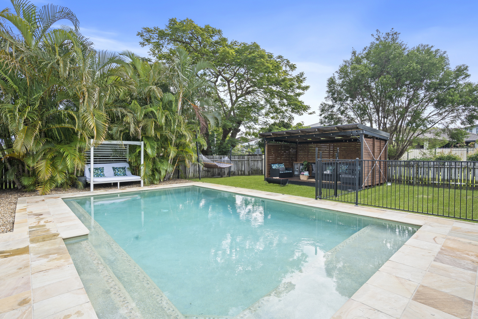 The spacious rear deck beckons and is made for entertaining – host relaxed dinners or sunset drinks with friends while overlooking the sparkling in-ground pool and private gazebo. For quieter moments, laze in the hammock and soak up the tranquil surrounds.