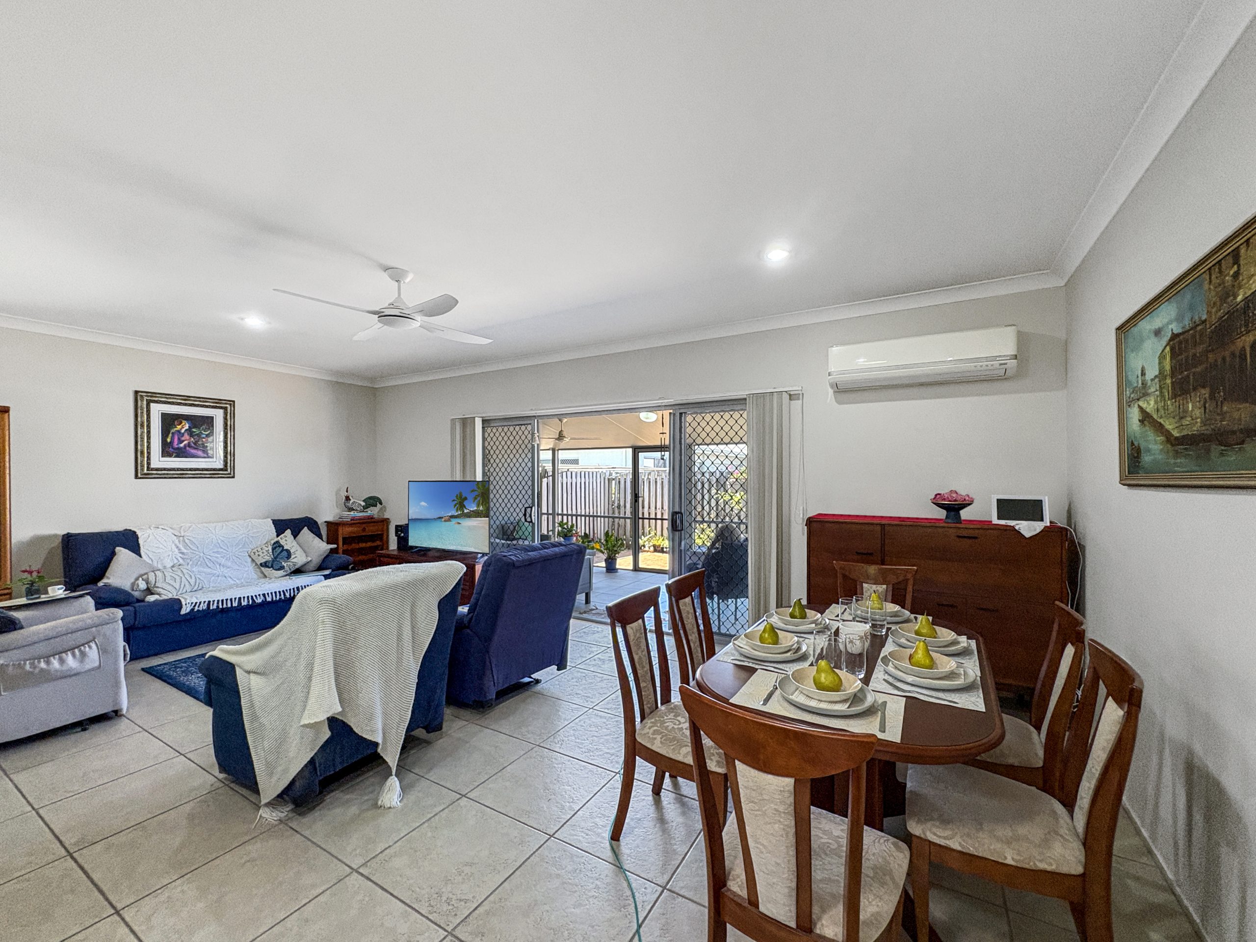 – Modern kitchen/living/dining area flows seamlessly to the fully enclosed alfresco and fully fenced backyard