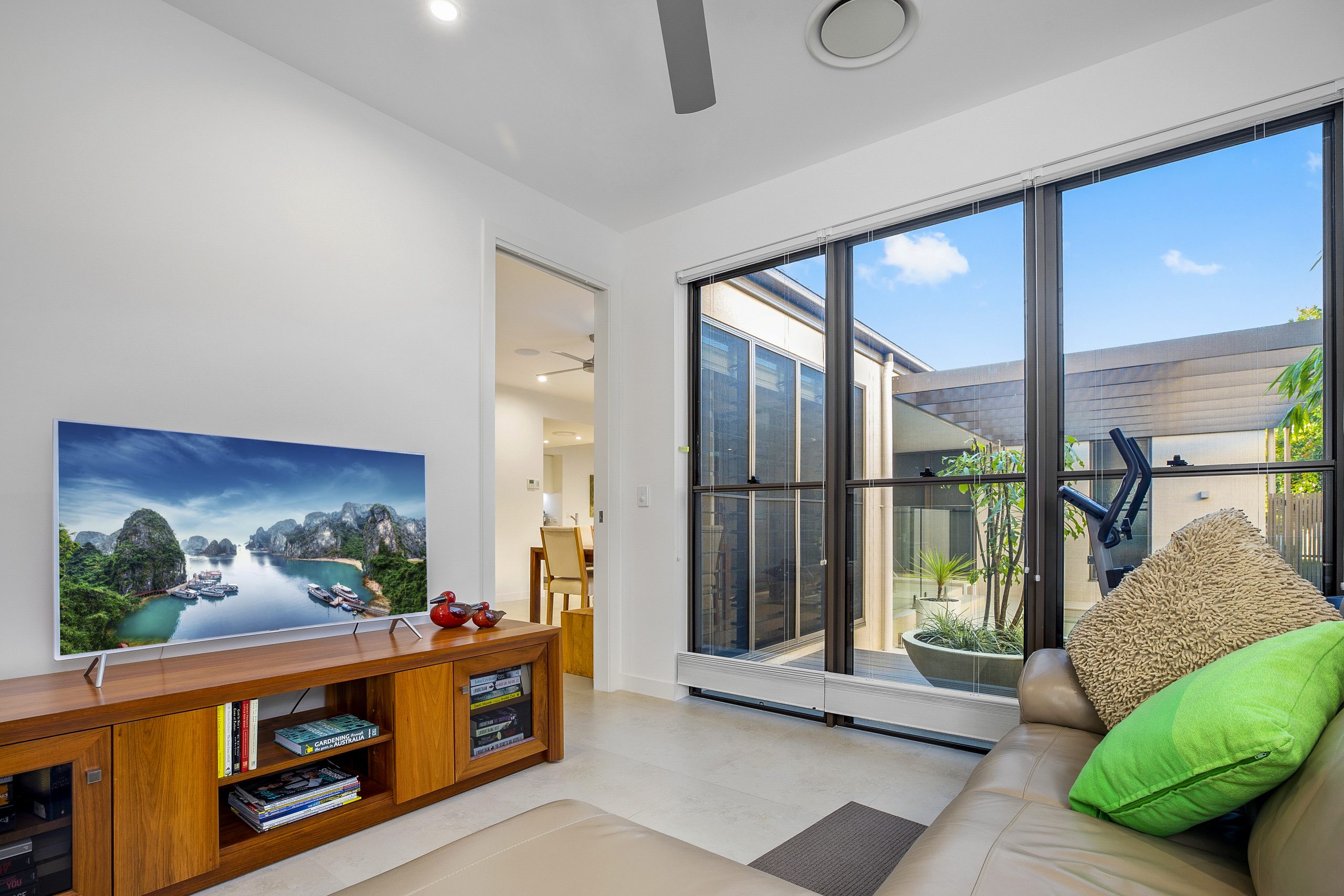 There’s a multi purpose media room adjacent to a cleverly hidden study nook.