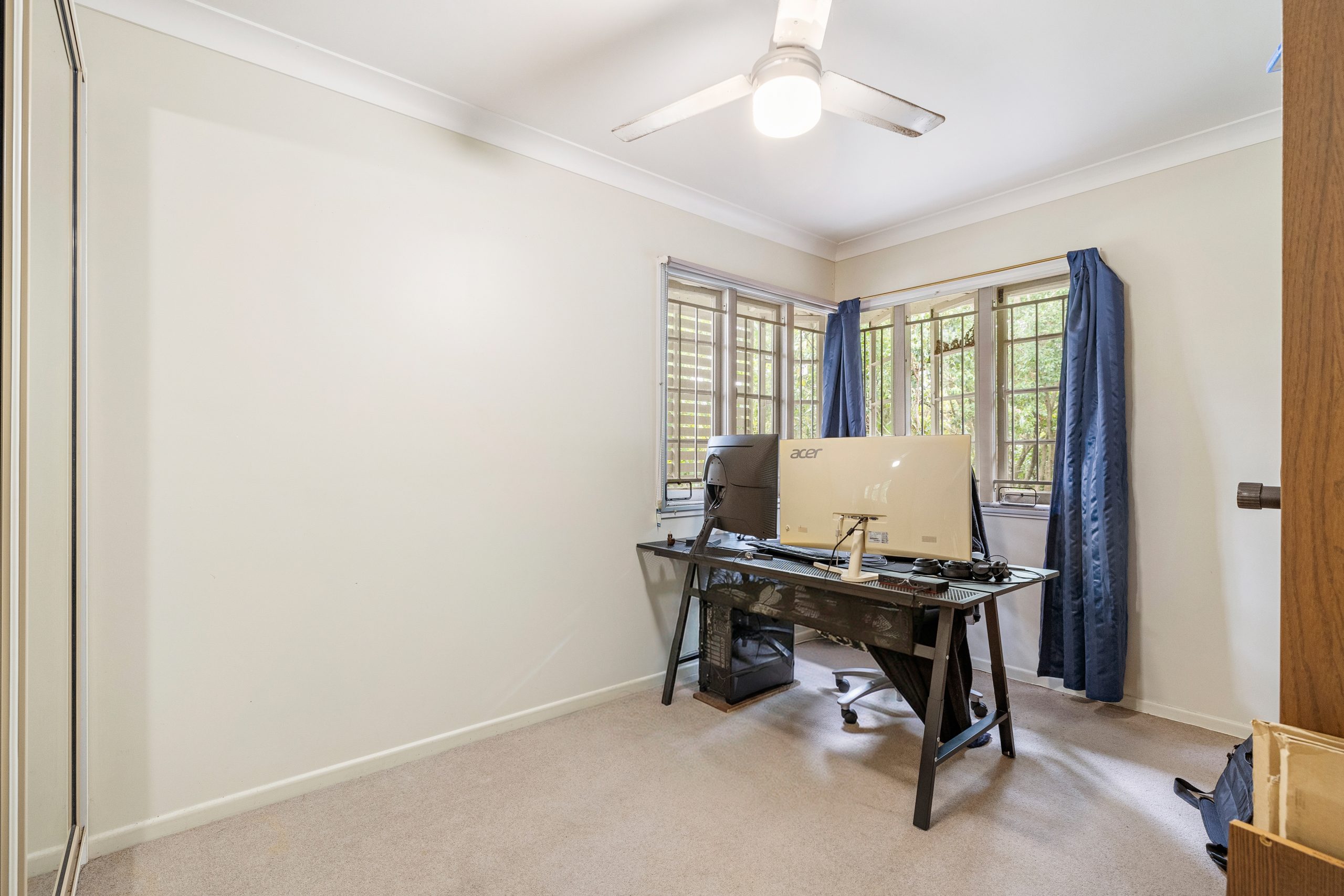 With a bit of work, the private front yard could give you a sense of your own oasis, where you can relax on your front covered veranda and enjoy the peace and serenity. The large master bedroom also opens out through Tri-Fold doors onto this area and has the added benefit of air-conditioning and an ensuite. All three bedrooms have built-ins, with an office off the dining area and separate lounge room with air-conditioning flowing to the sunroom.