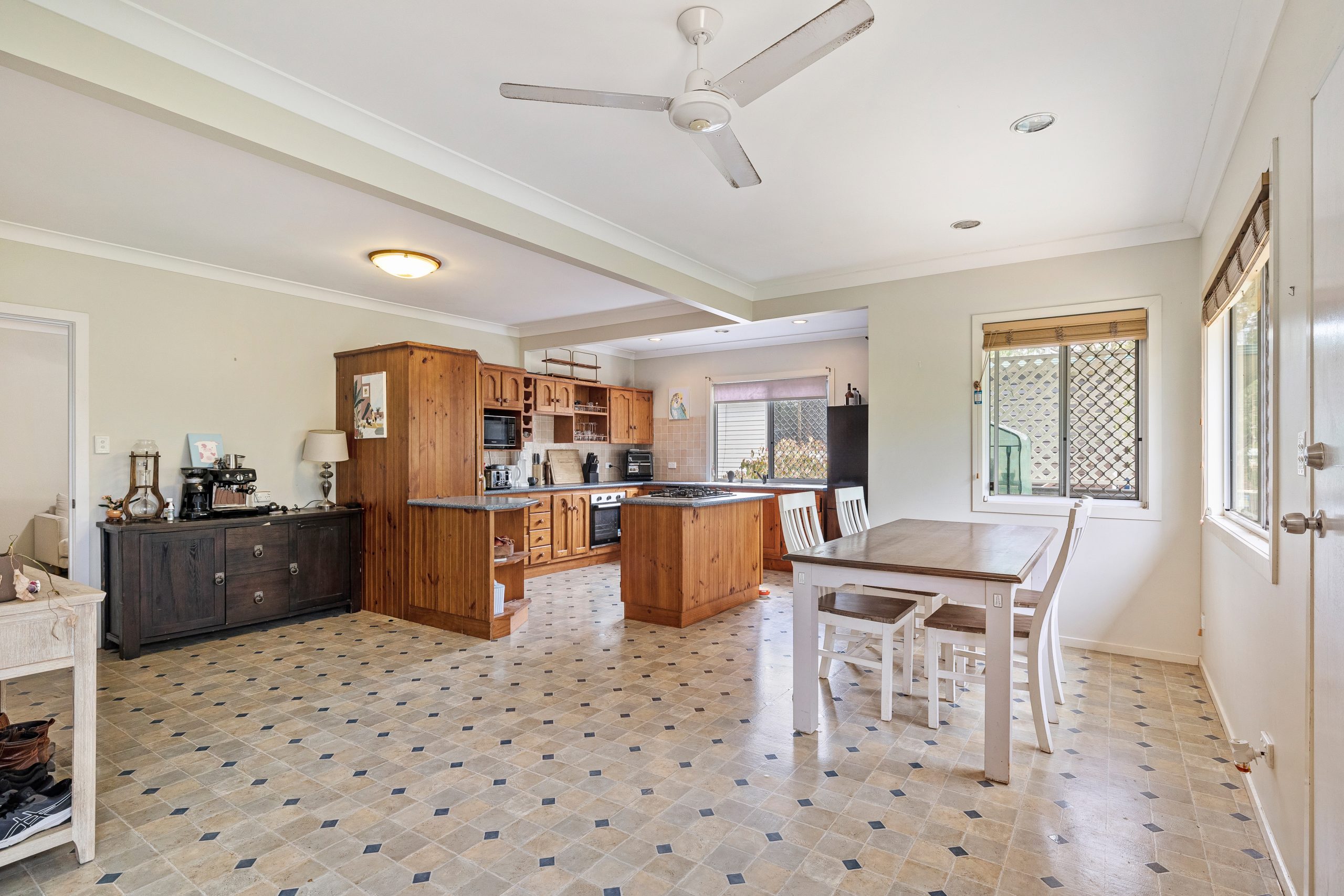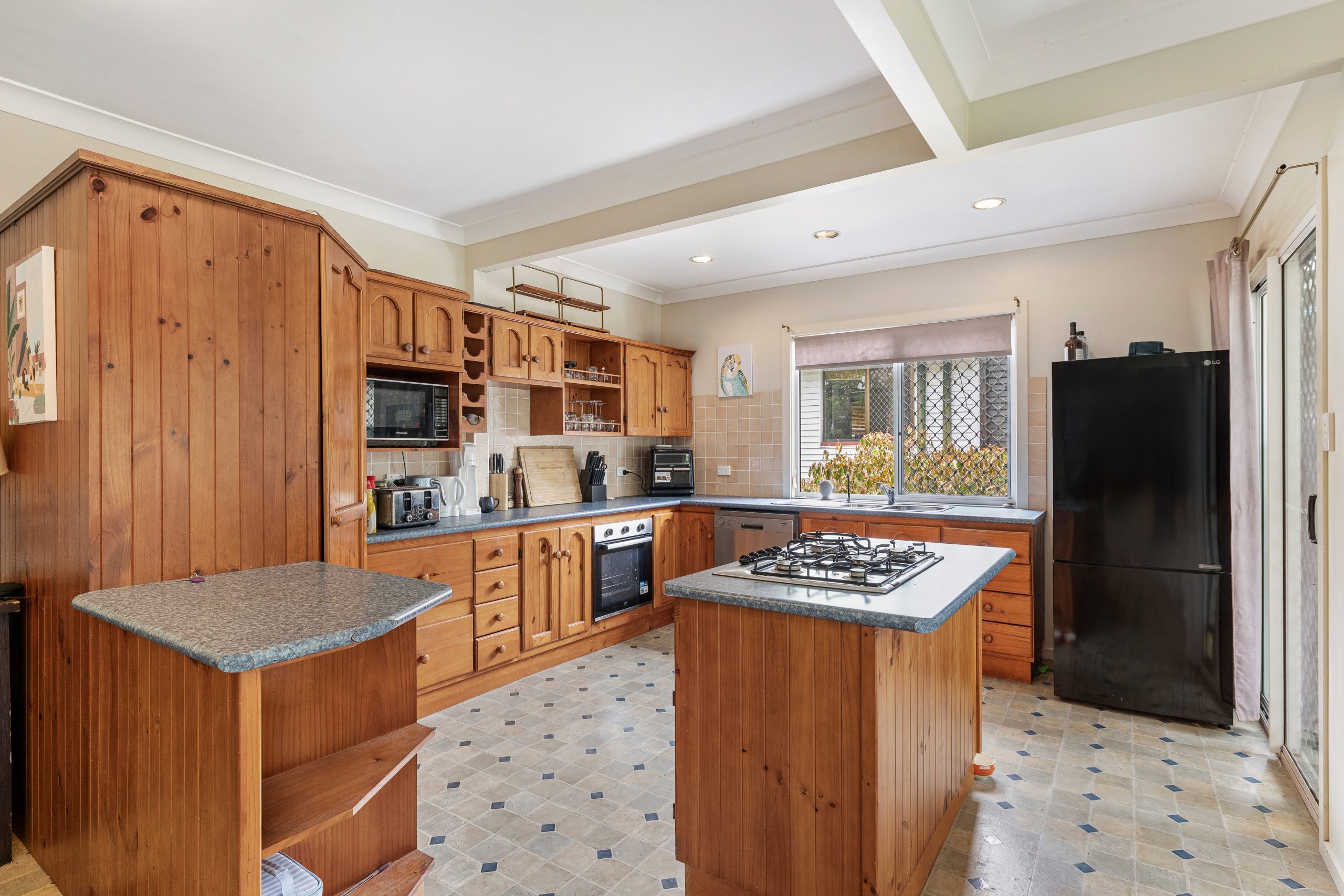 The large timber kitchen has plenty of bench and cupboard space, gas cooktop, electric oven and dishwasher. The kitchen and dining area is open plan and large enough for another sitting area in the corner and has a private balcony for you to relax and have your morning coffee, while overlooking the backyard.