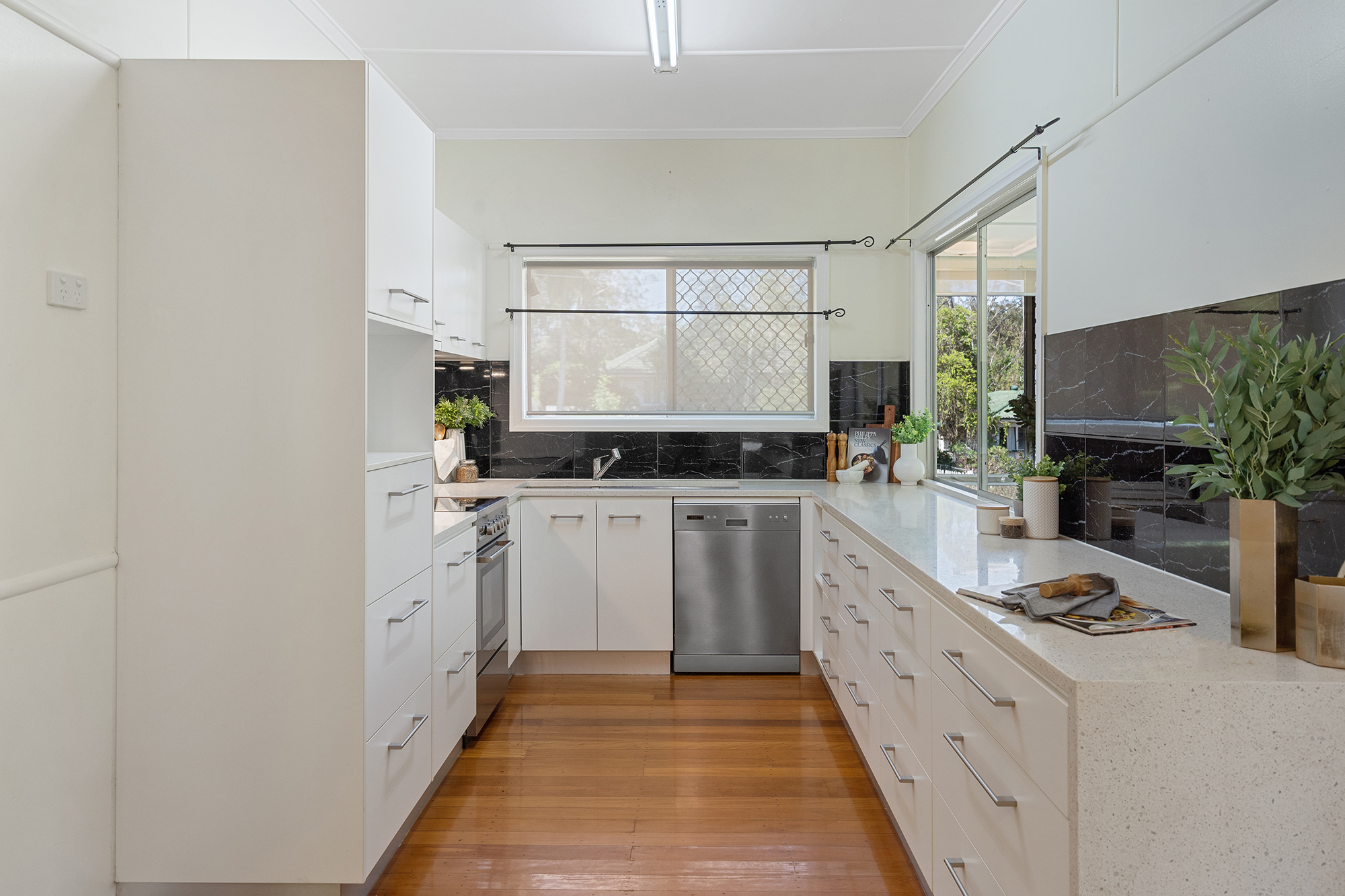 The generous kitchen has been stylishly renovated with stone bench tops, soft close cabinetry, dishwasher and quality stainless appliances, designed and positioned to provide a synergy between formal dining and the homes light filled sunroom which takes full advantage of the homes Northly aspect.