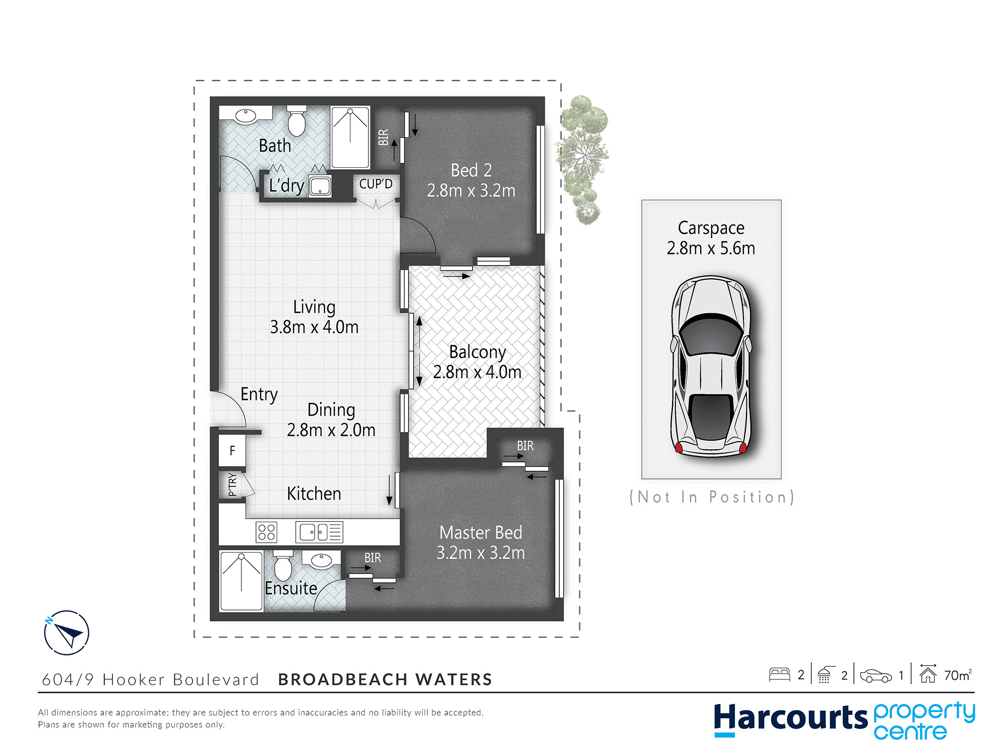 There are two generously sized bedrooms, both with built-in robes and access to the balcony. The master bedroom also boasts a private ensuite. A main bathroom with laundry and secure entry complete the package.