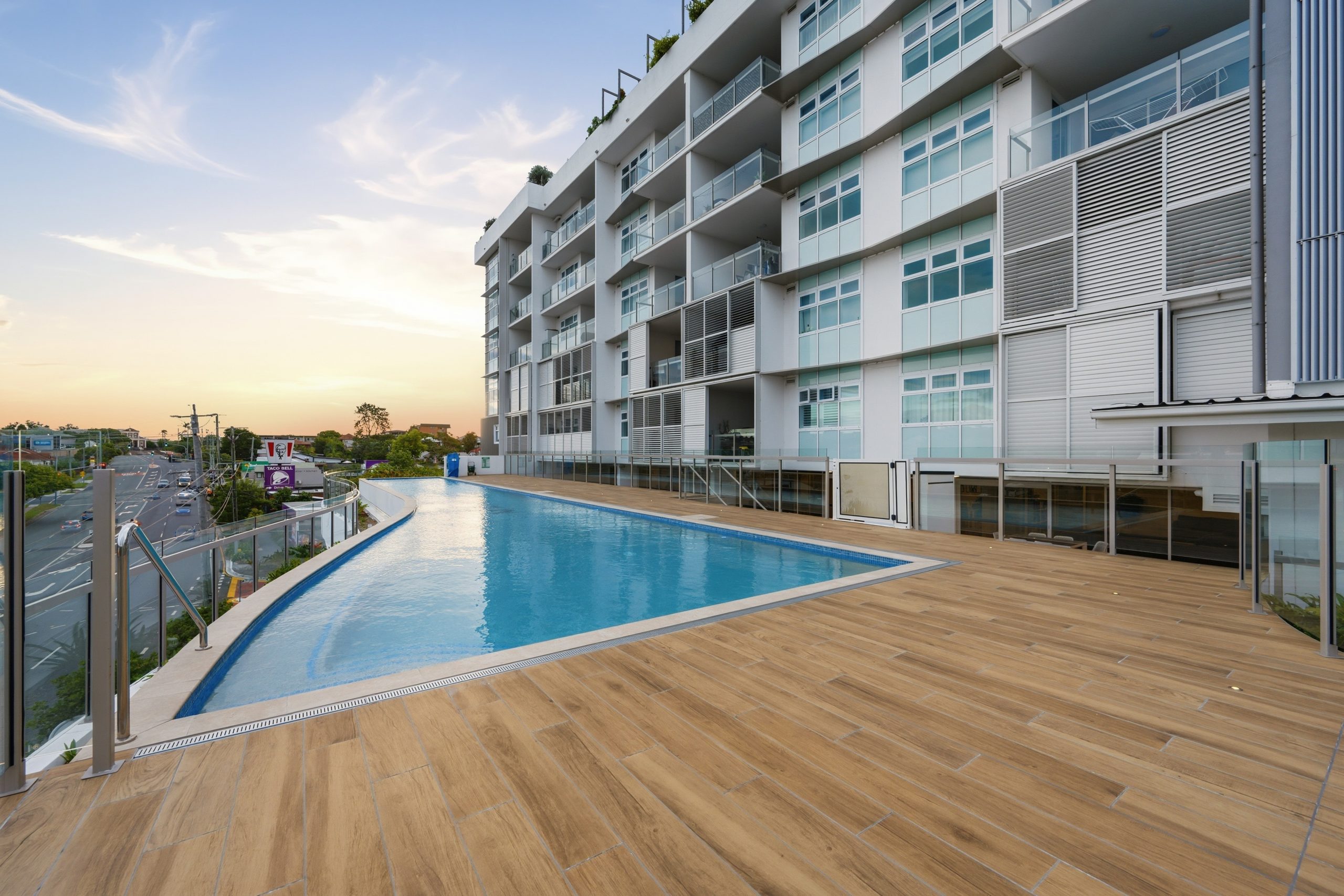 Positioned within the tightly held Maasra development, this immaculate two bedroom apartment delivers a refined lifestyle of space, sophistication and resort style amenities, framed by expansive urban views across Coorparoo.