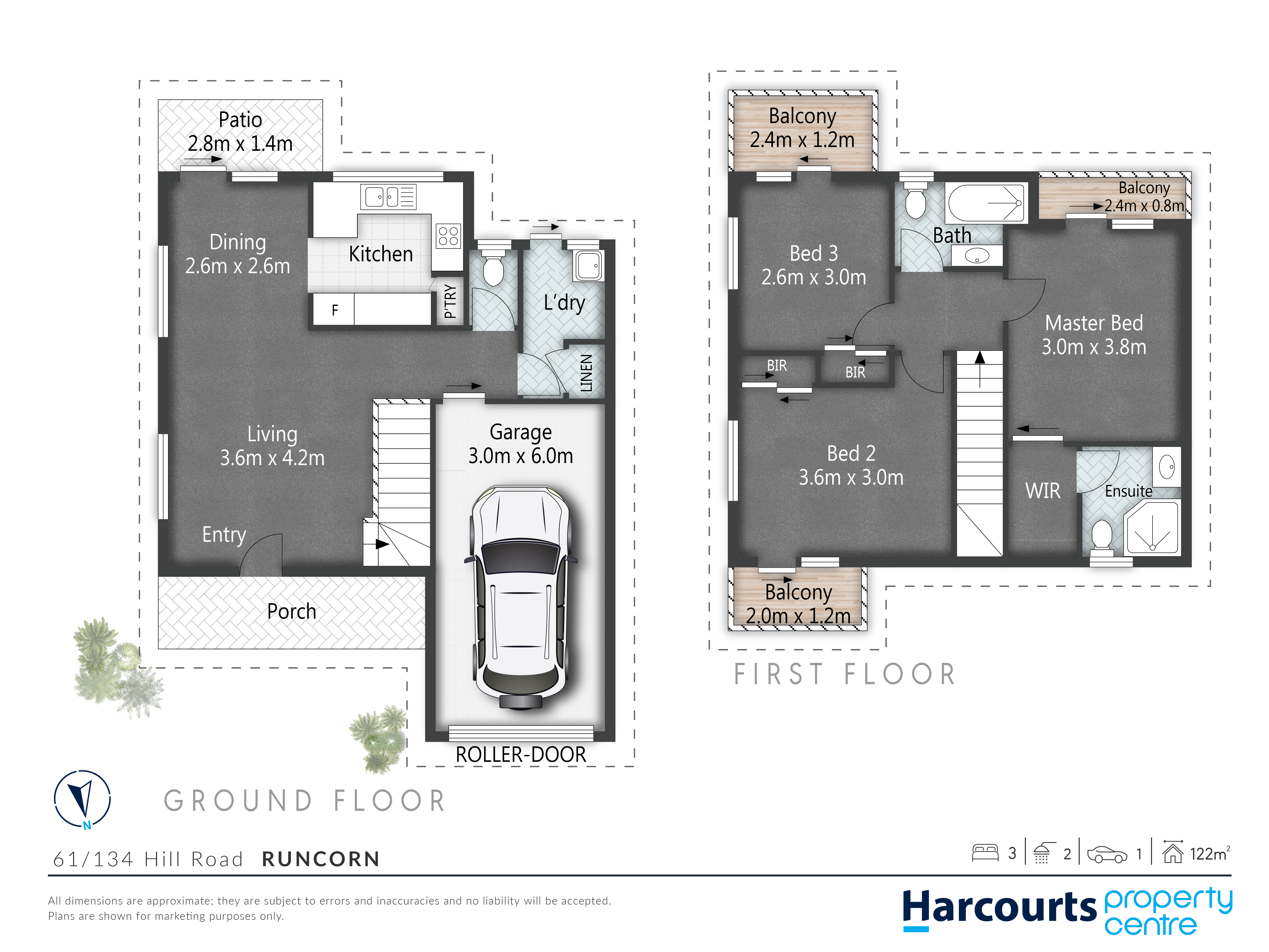 • 3 large bedrooms with ceiling fans, built in wardrobes and access to private balcony. The master bedroom has an ensuite, walk in robe and air conditioning
