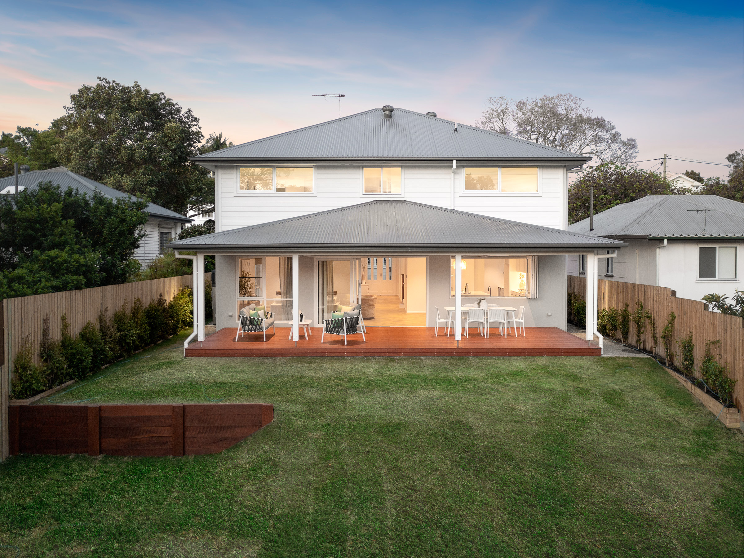 – Extensive back deck with landscaped gardens