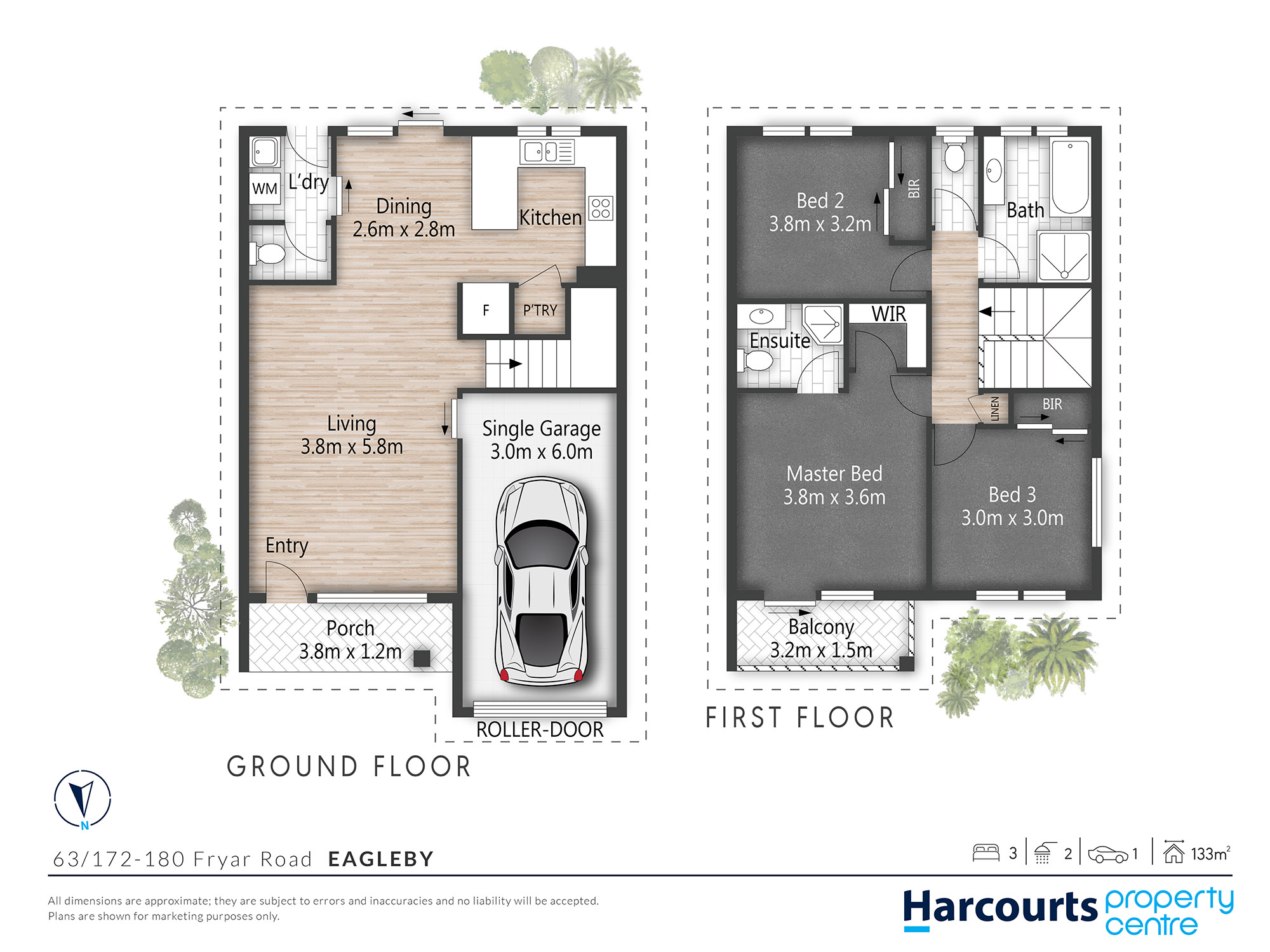 – Three bedrooms all with fans & built-in’s – main with ensuite, walk-in robe & balcony