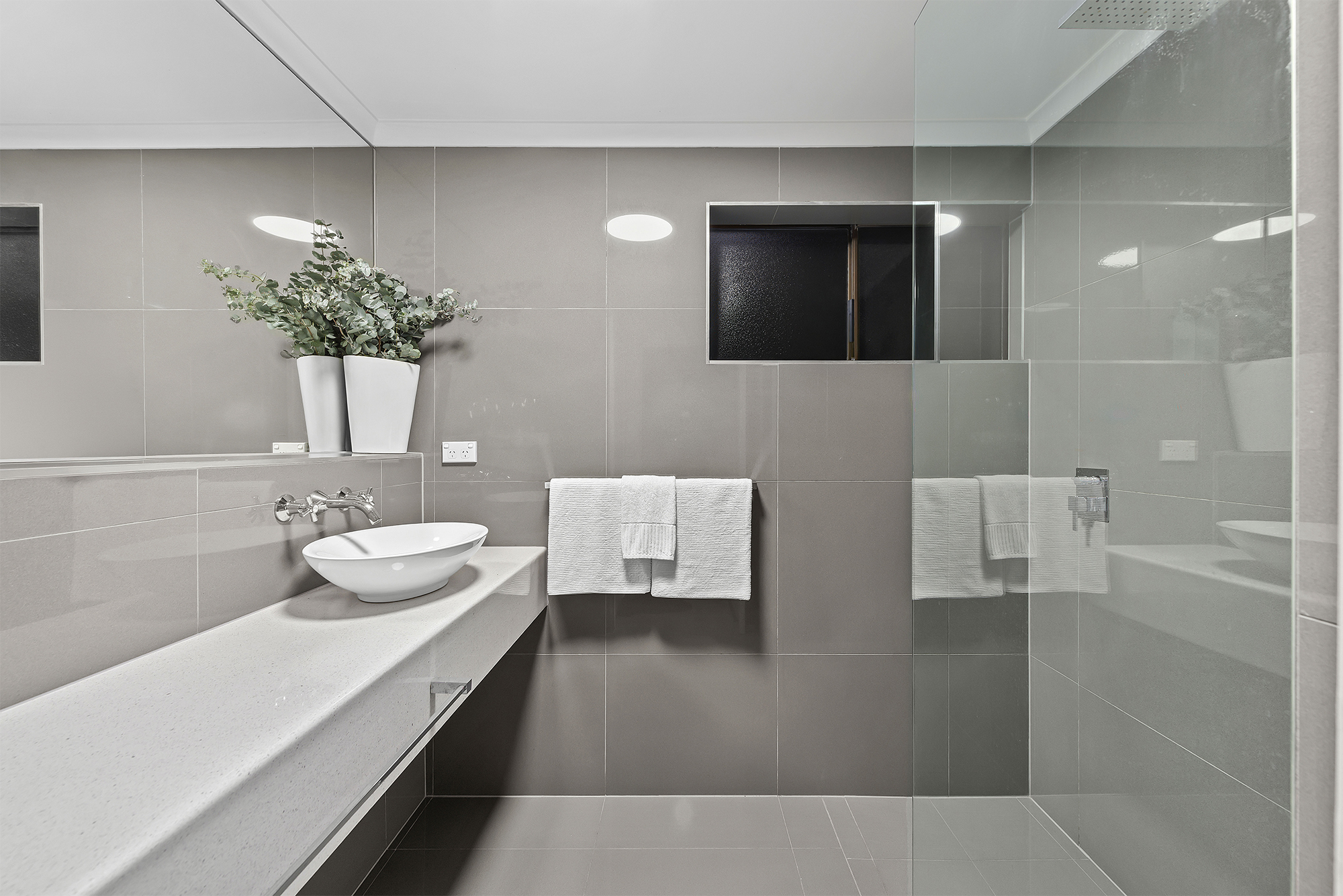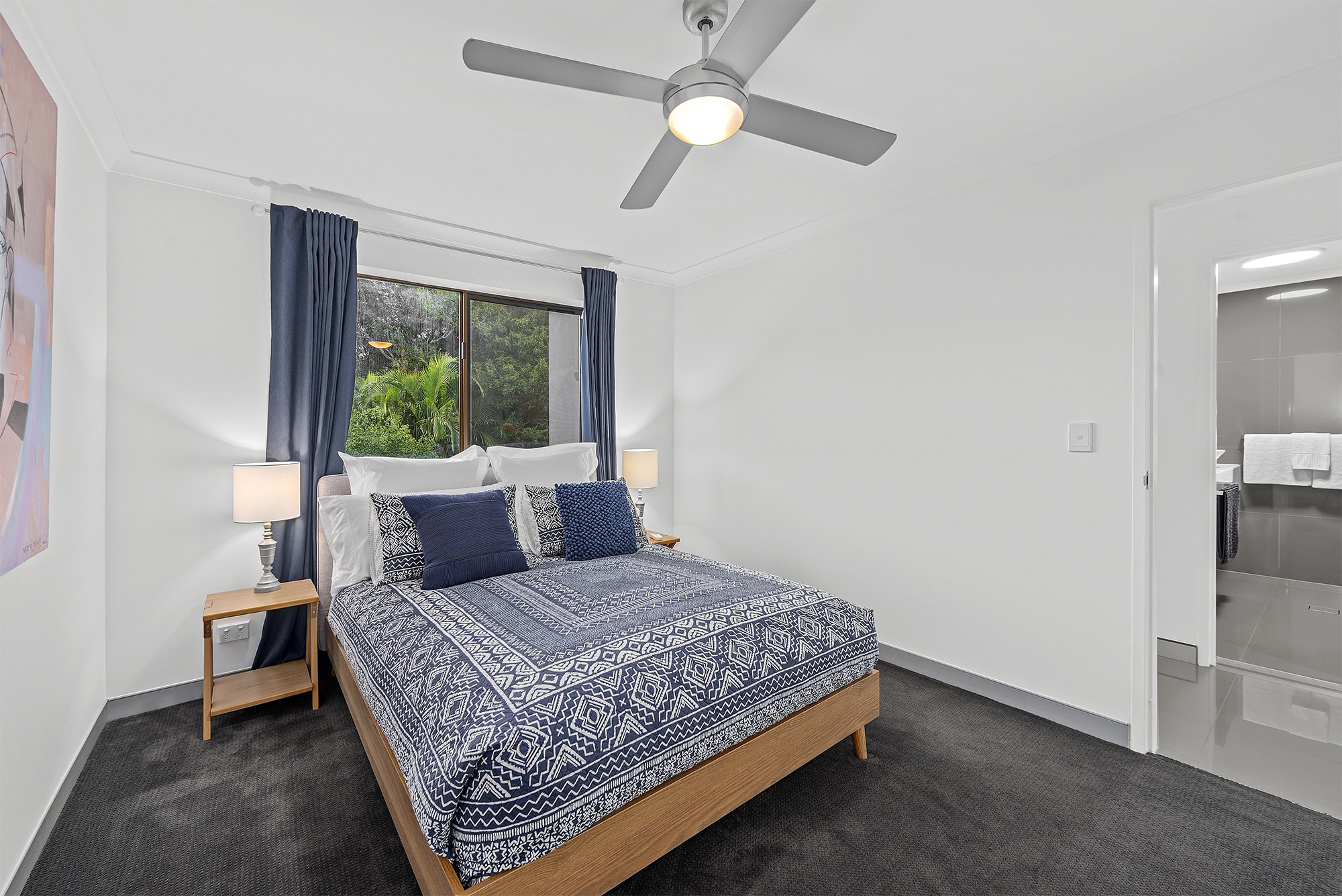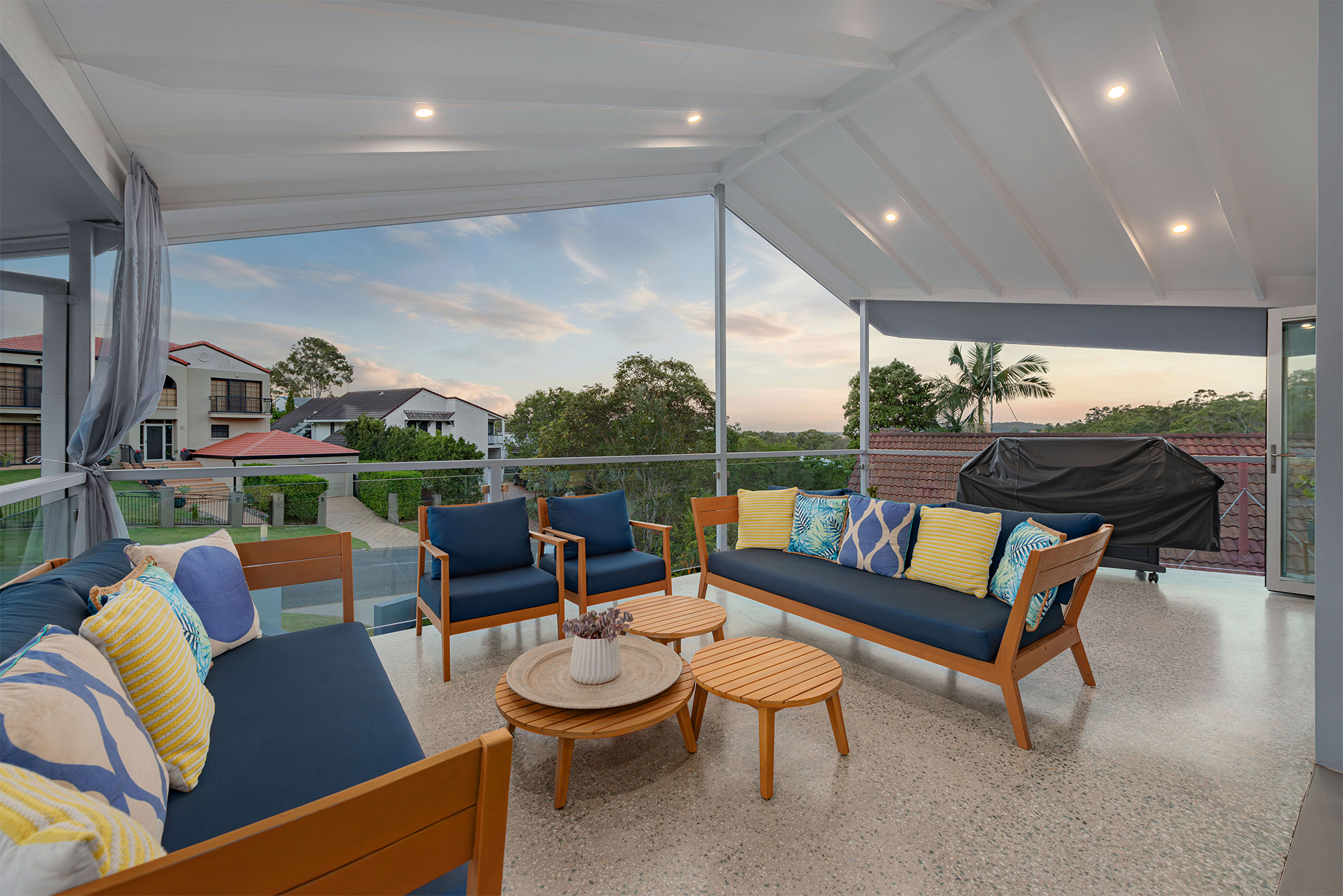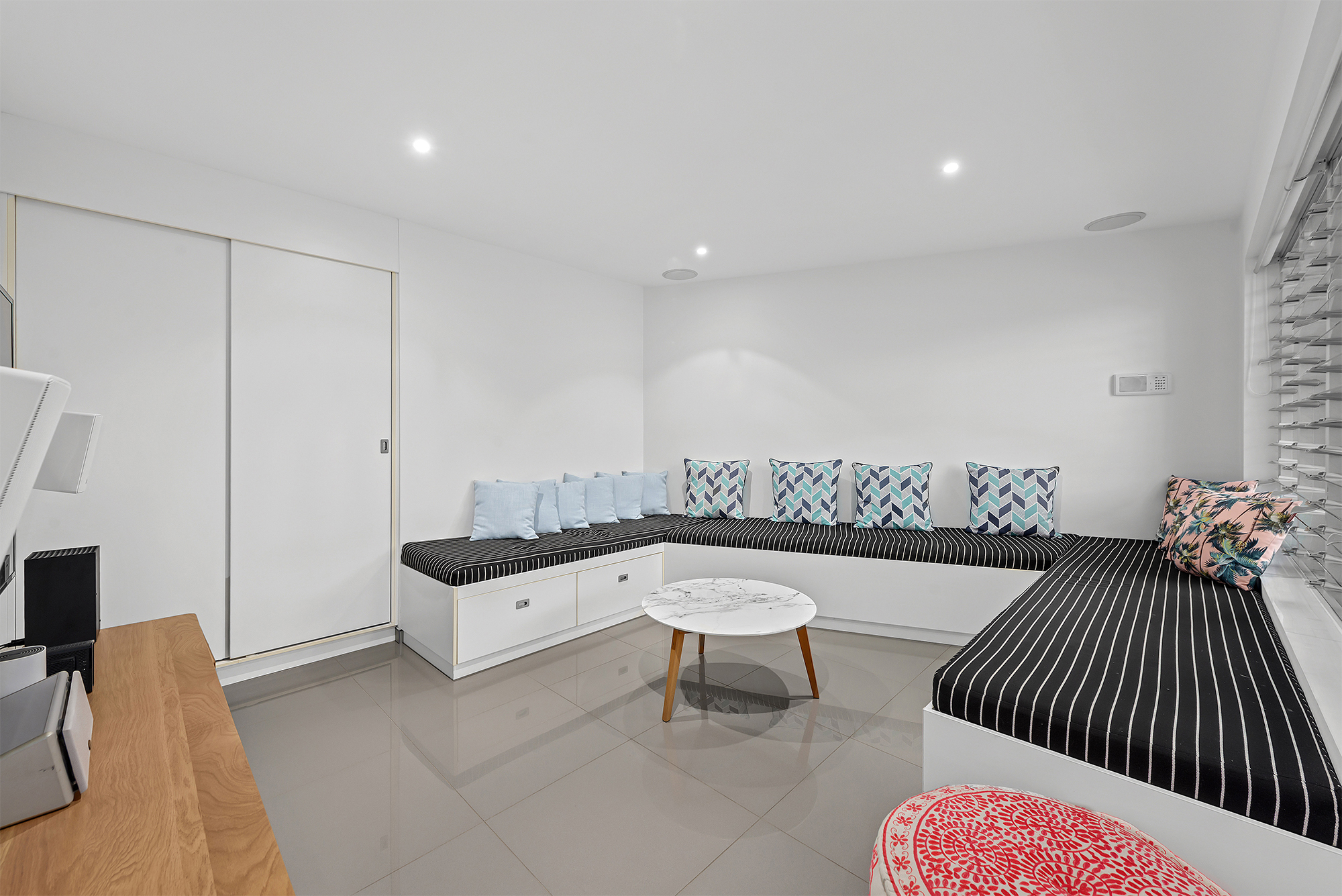 The upper level is devoted to relaxed living and entertaining, with polished timber floors, raked ceilings and a light-filled open plan lounge and dining area flowing seamlessly to a covered alfresco balcony. From here enjoy easterly treetop outlooks, views to the reserve at the rear and the inviting pool below. The kitchen is both beautiful and brilliantly appointed with a gas cooktop, multiple ovens, exceptional storage and adjacent casual meals area.