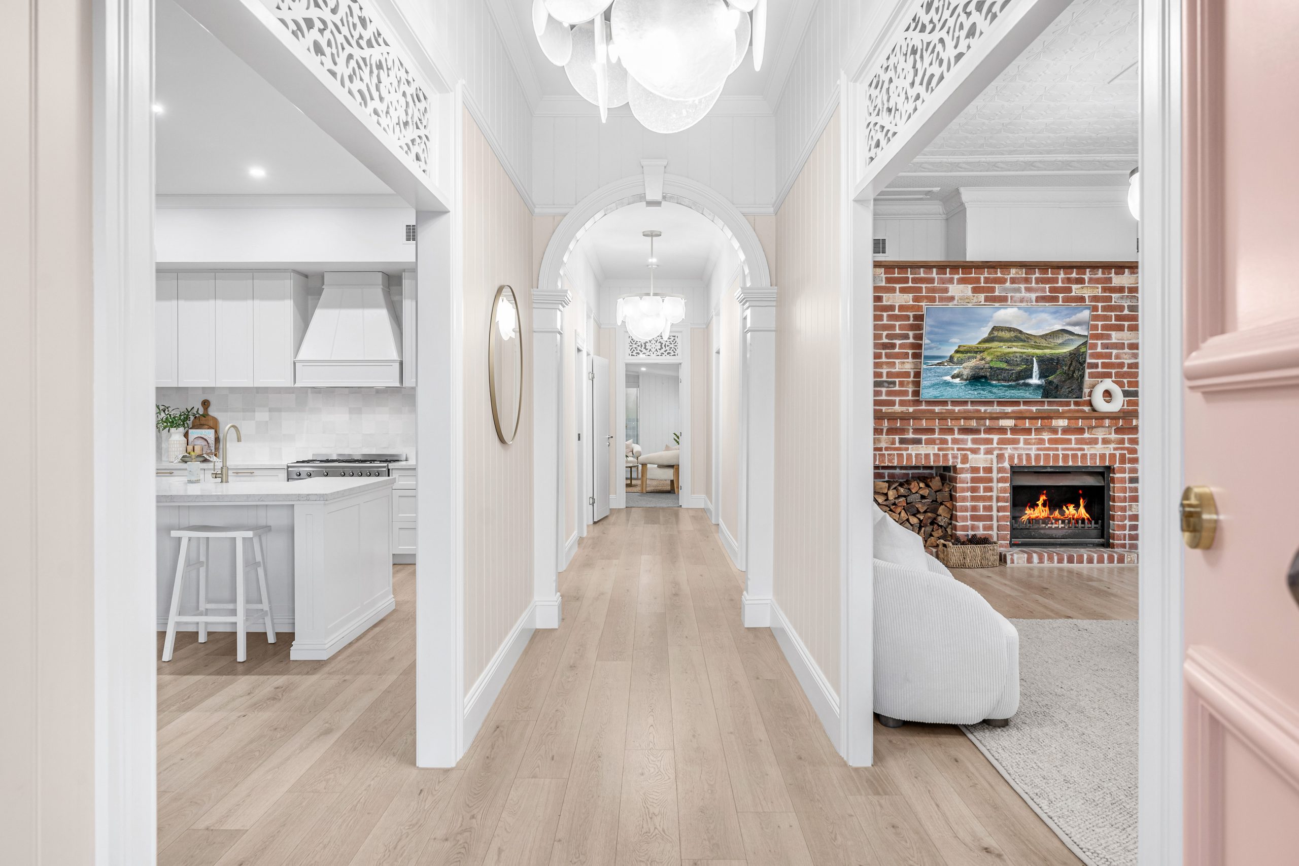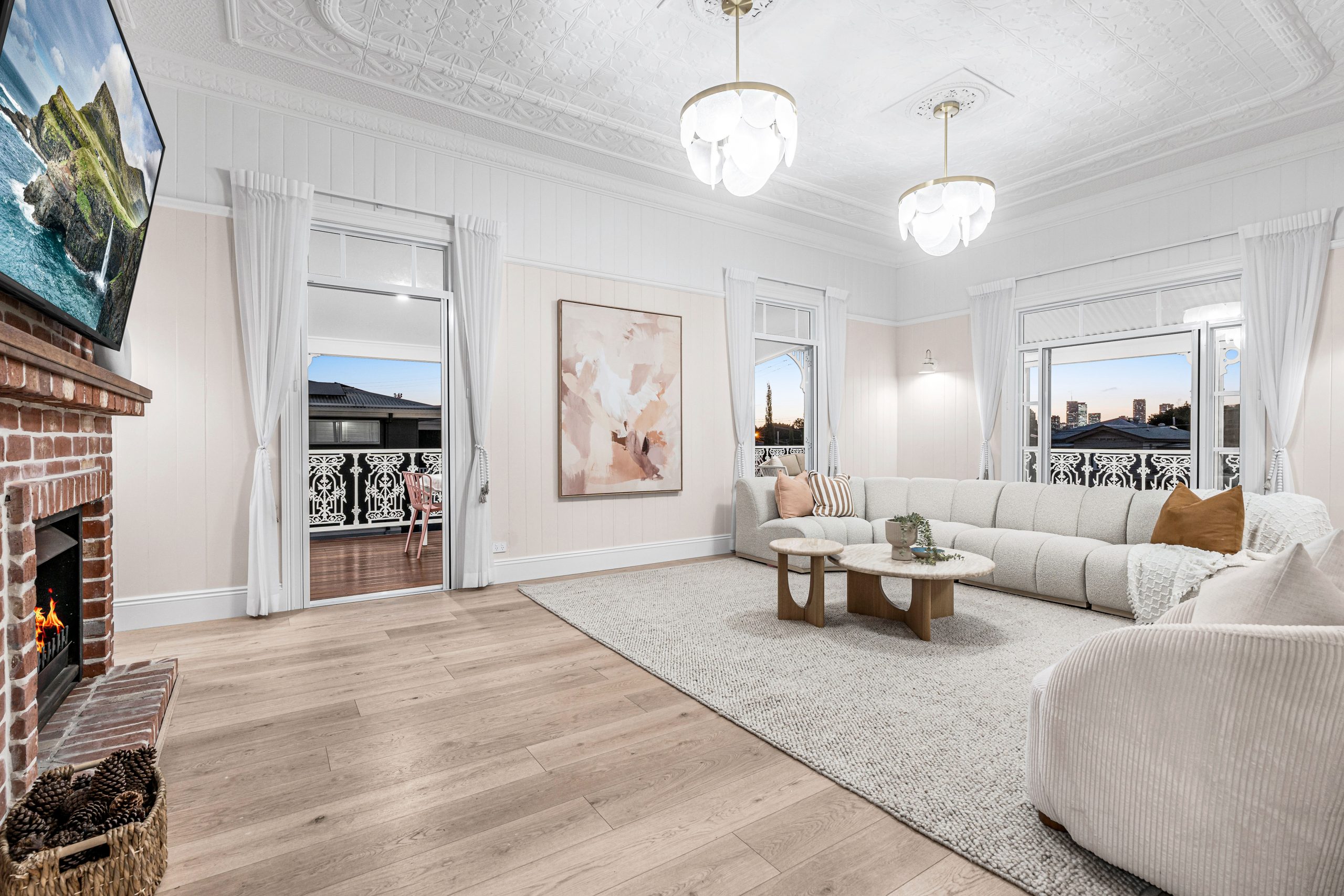 – Engineered flooring, multiple fireplaces, original profile cast iron lace balustrade, deep wraparound verandah