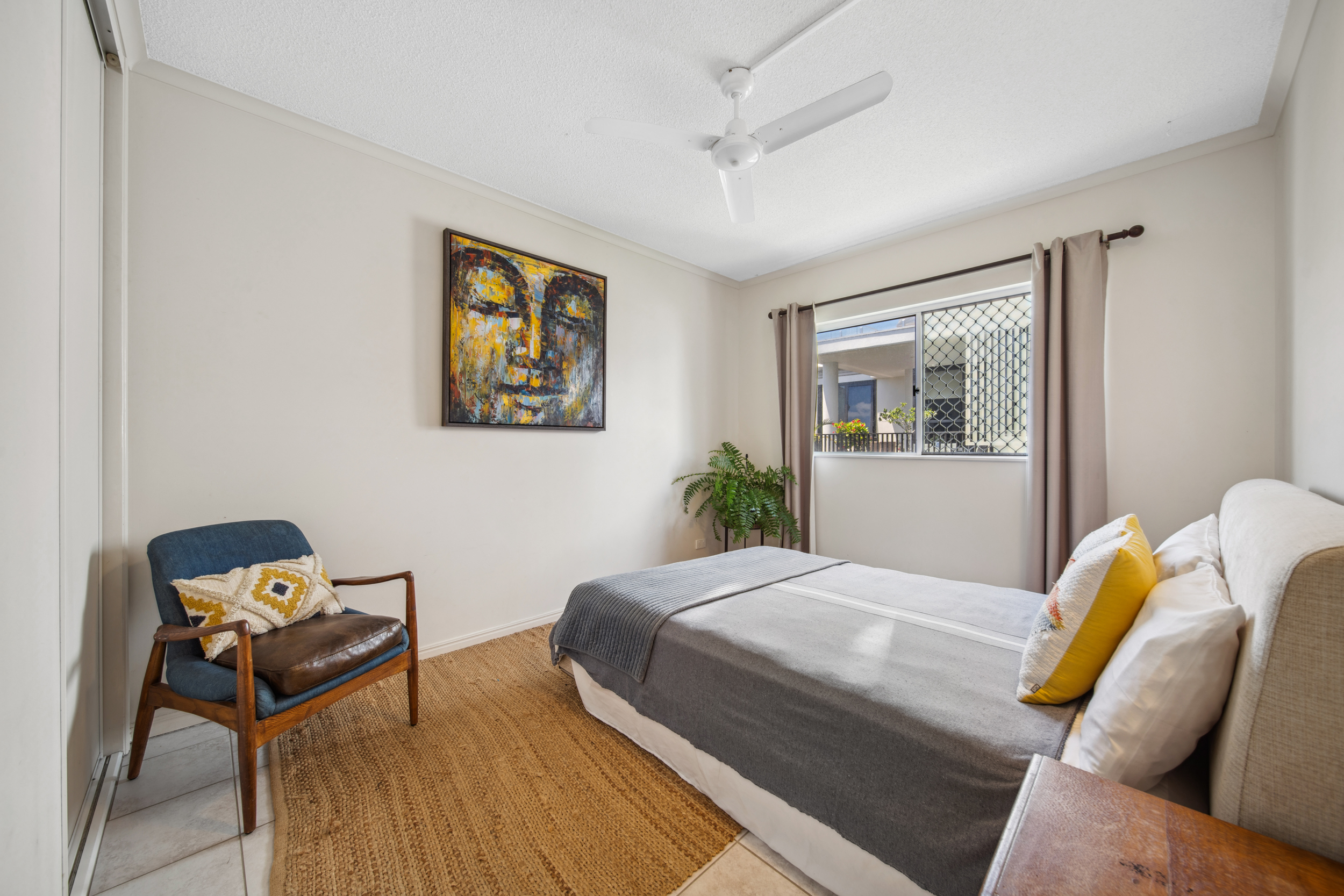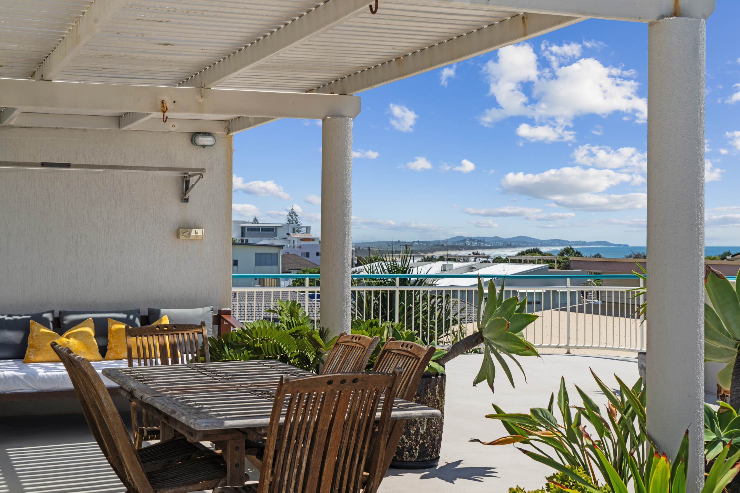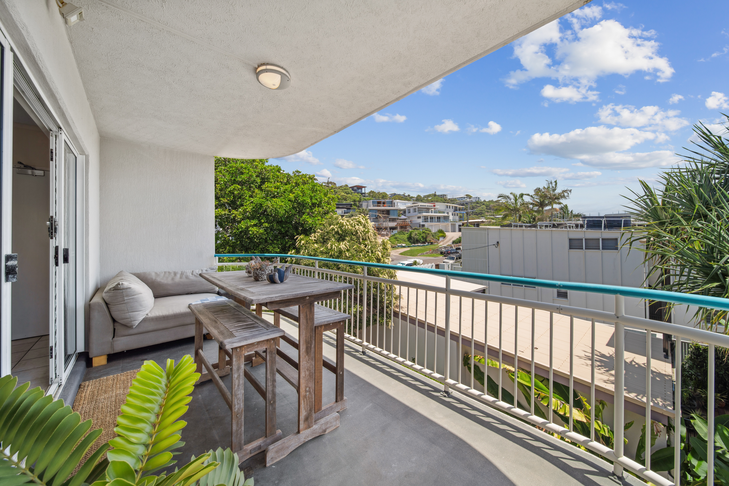Radiating Mediterranean charm and beachside serenity, this solid older-style apartment stands apart with its rare privacy and no adjoining walls with neighbours. Set in a well-maintained complex of just seven, with only two apartments in this part of the building, it offers a quiet and character-filled retreat just moments from Coolum Beach and First Bay.