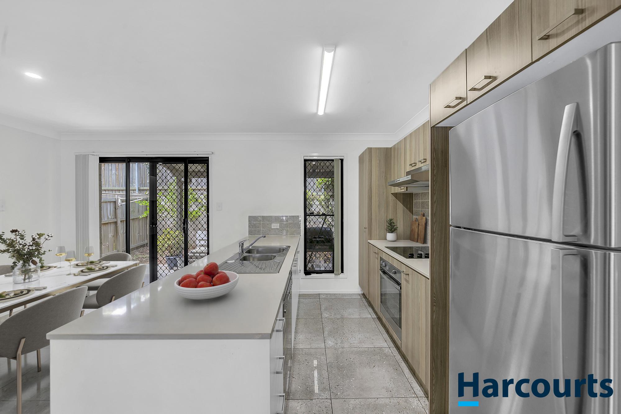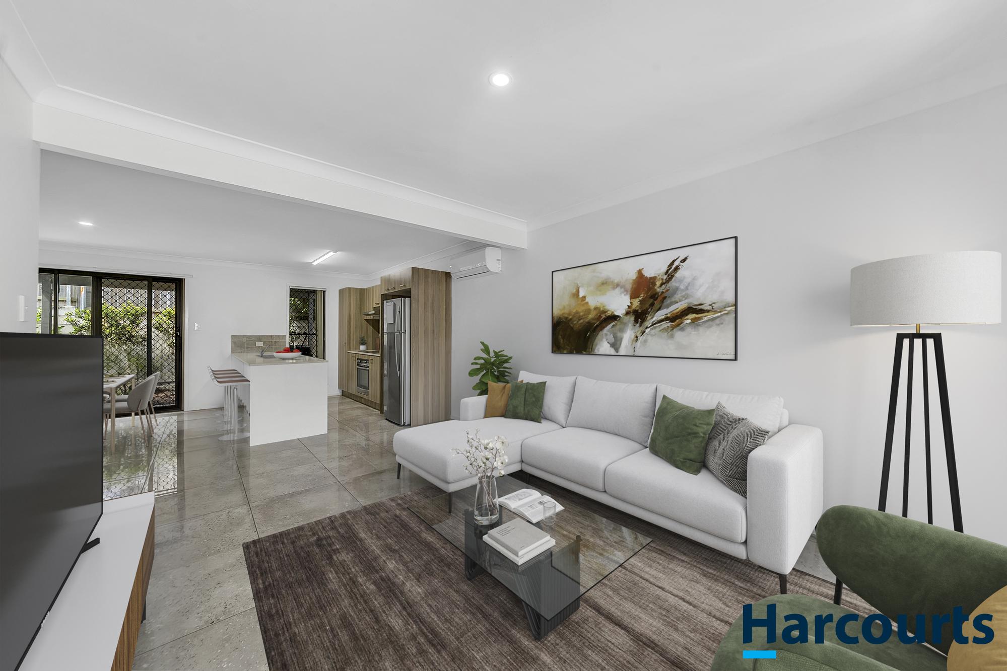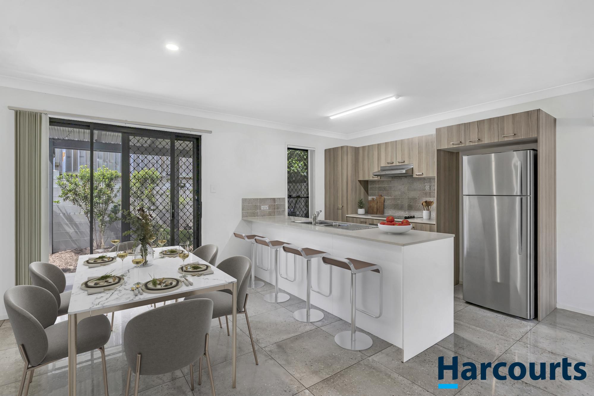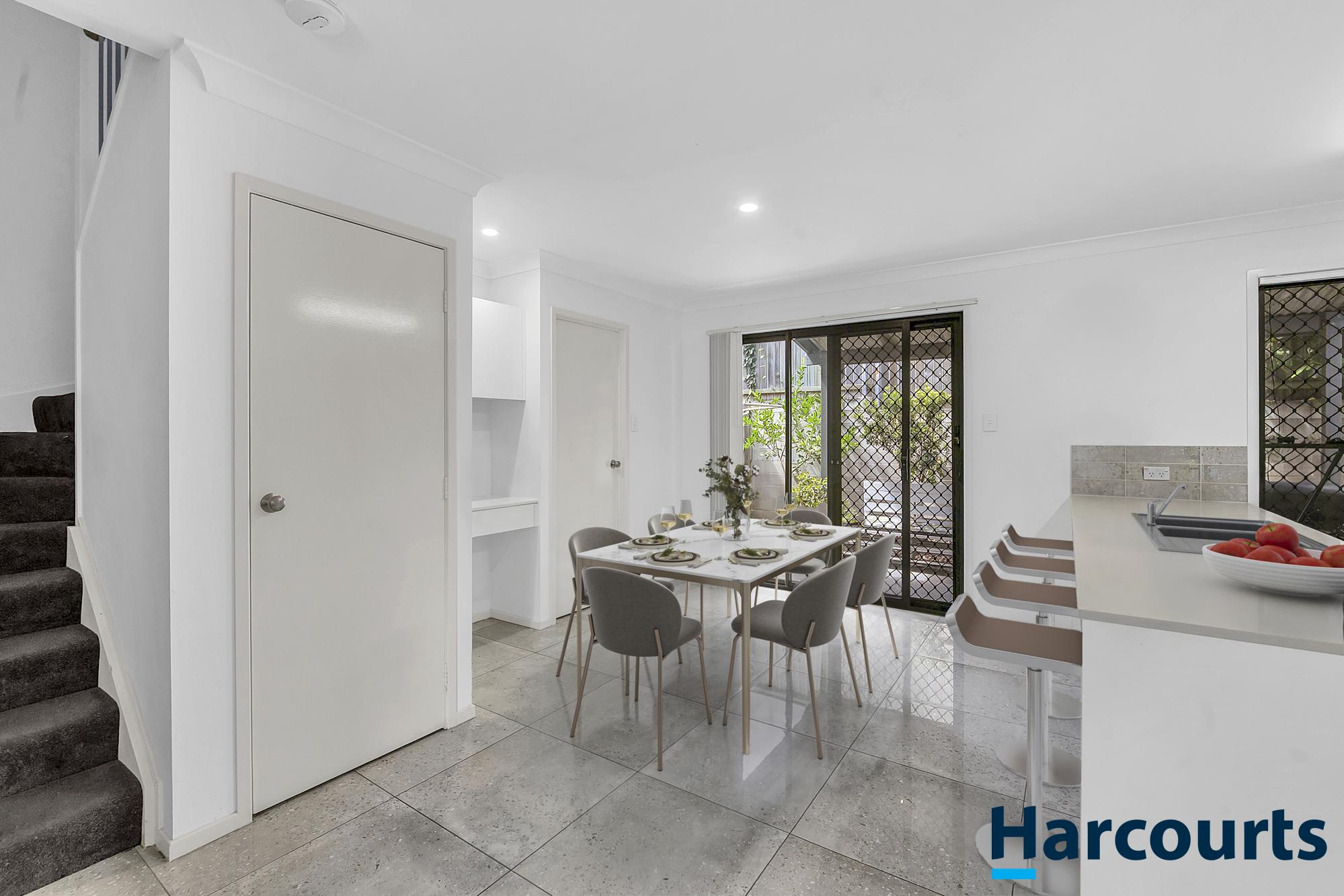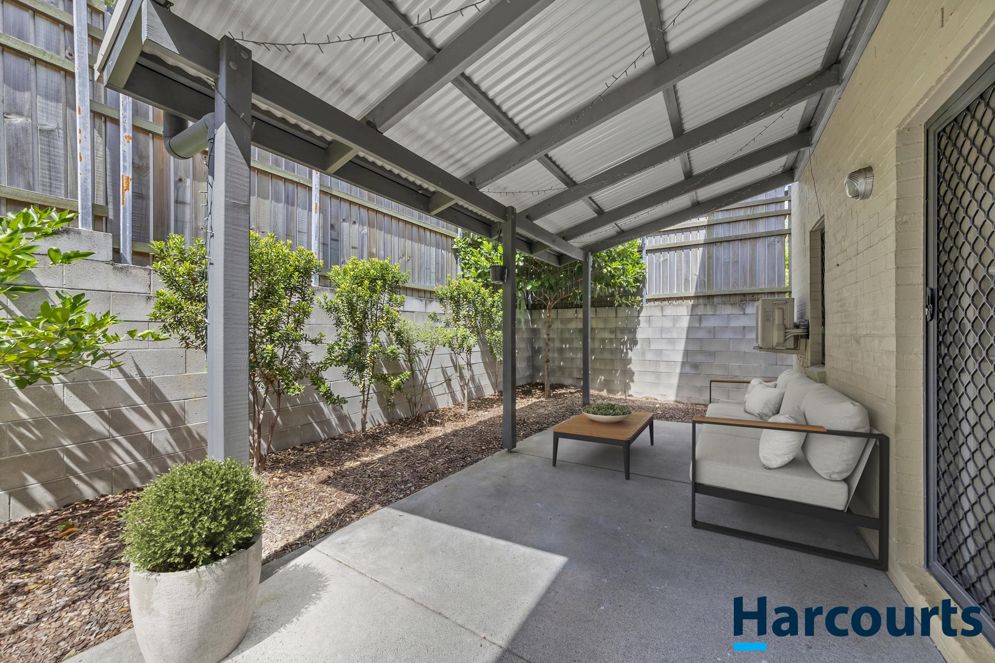 The dining area opens to a covered outdoor alfresco space, perfect for relaxing or entertaining, with a private garden area that’s easy to maintain. There’s also a convenient laundry and additional storage on this level.