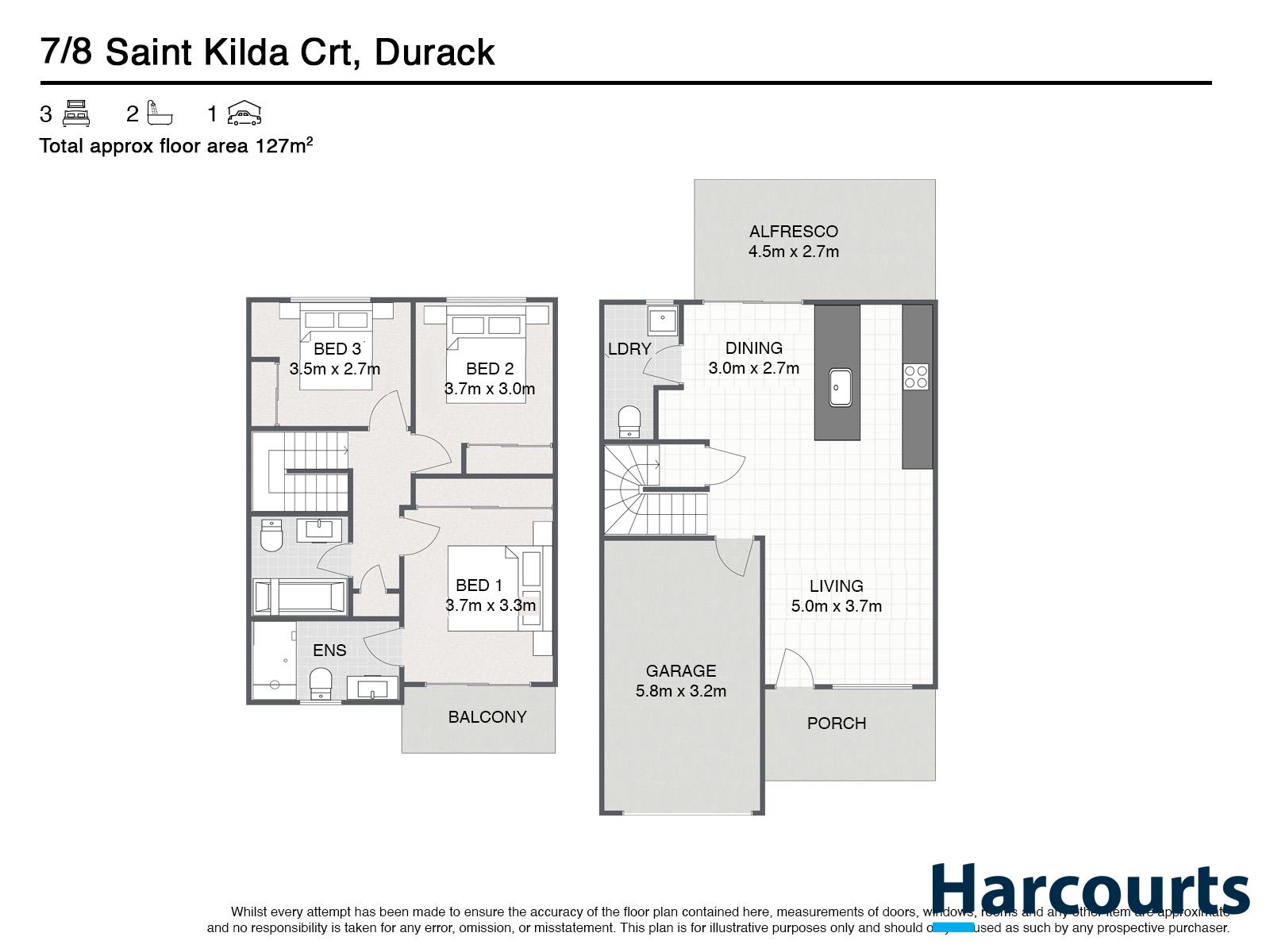 • Total floor area: Approximately 127m²