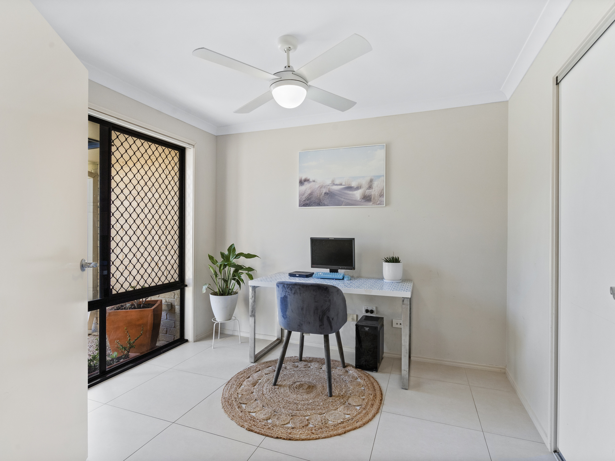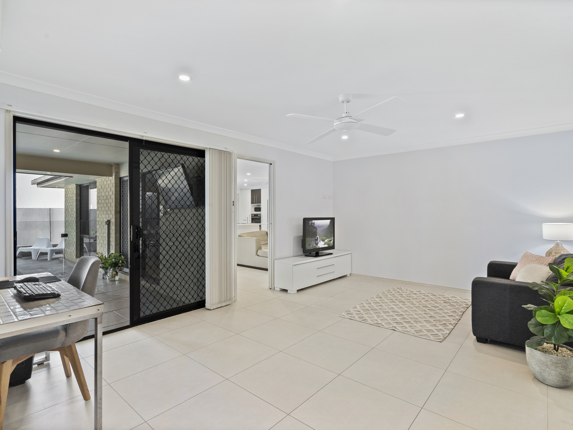 At the rear of the property, you will find the “children’s retreat” with three bedrooms sharing a media/family room ensuring the whole families living space requirements are catered for. These three bedrooms are serviced by an extravagant bathroom with a bathtub and separate toilet. The beautiful master bedroom is located at the front of the property and features a lavish walk-in wardrobe with custom storage, an ensuite and outdoor access. The property also features an additional fifth bedroom which could also be utilized as a bedroom or spacious home office, perfect for those who wish to run a business from home. All bedrooms have ceiling fans and built-in wardrobe space.