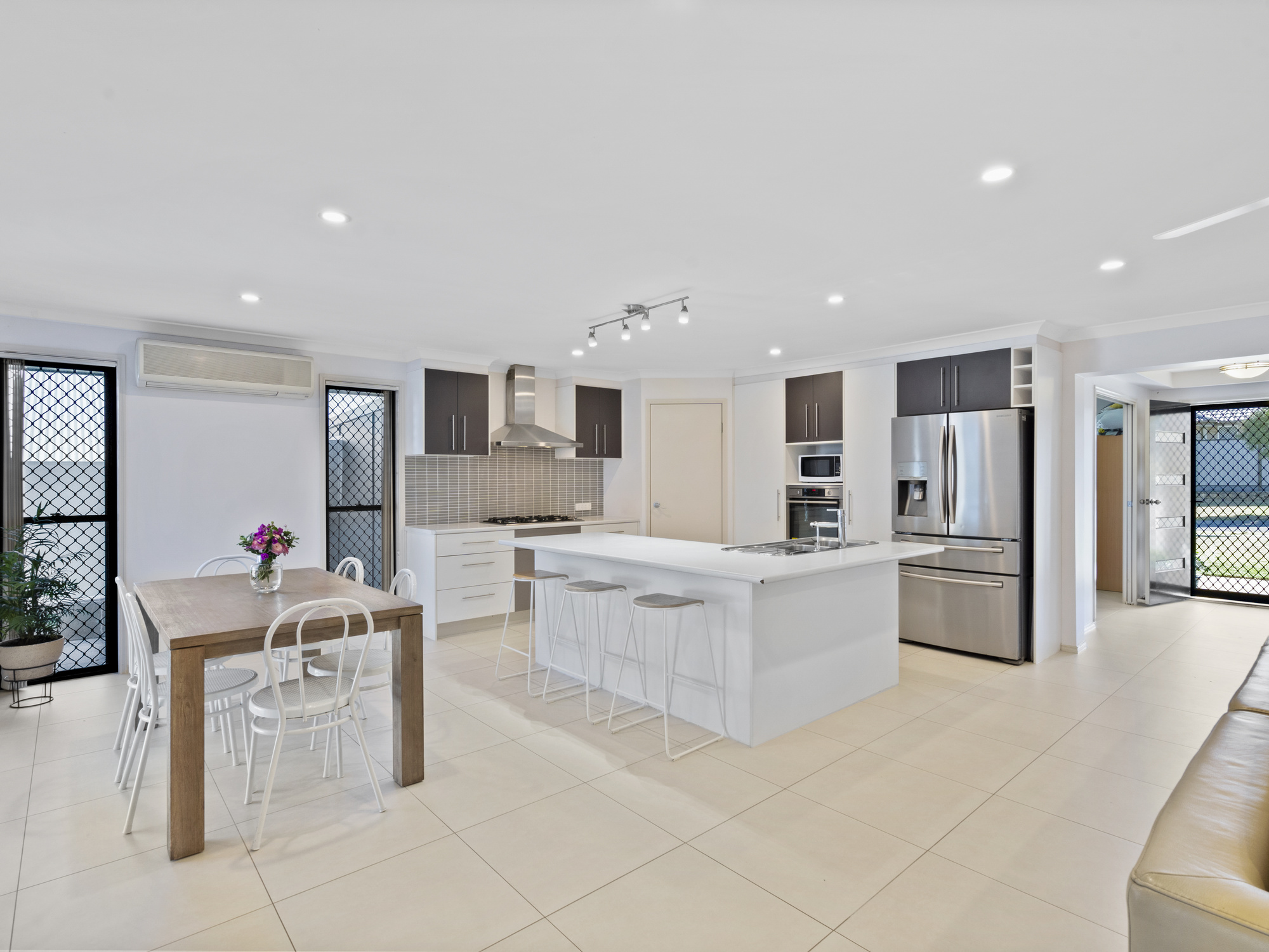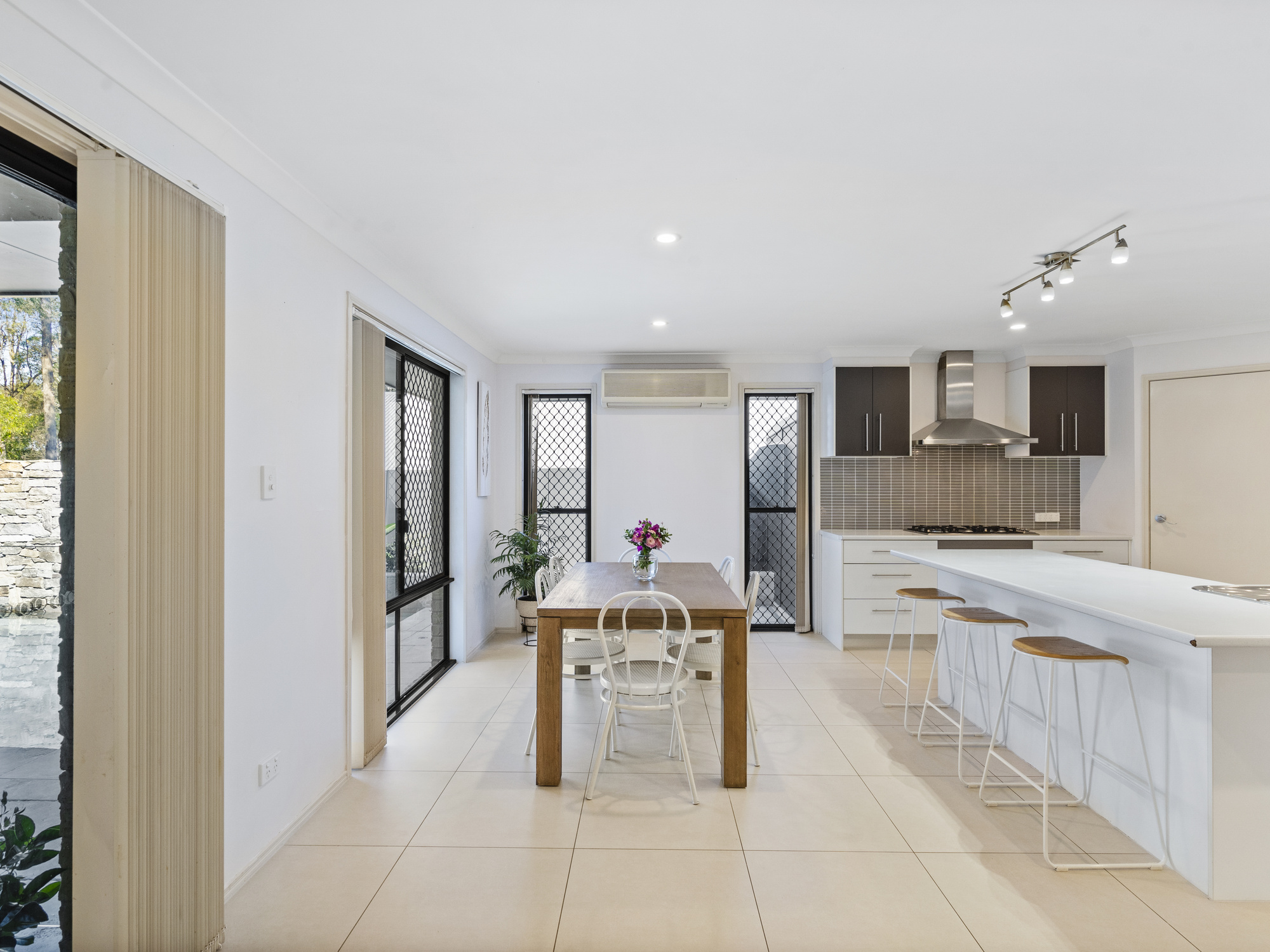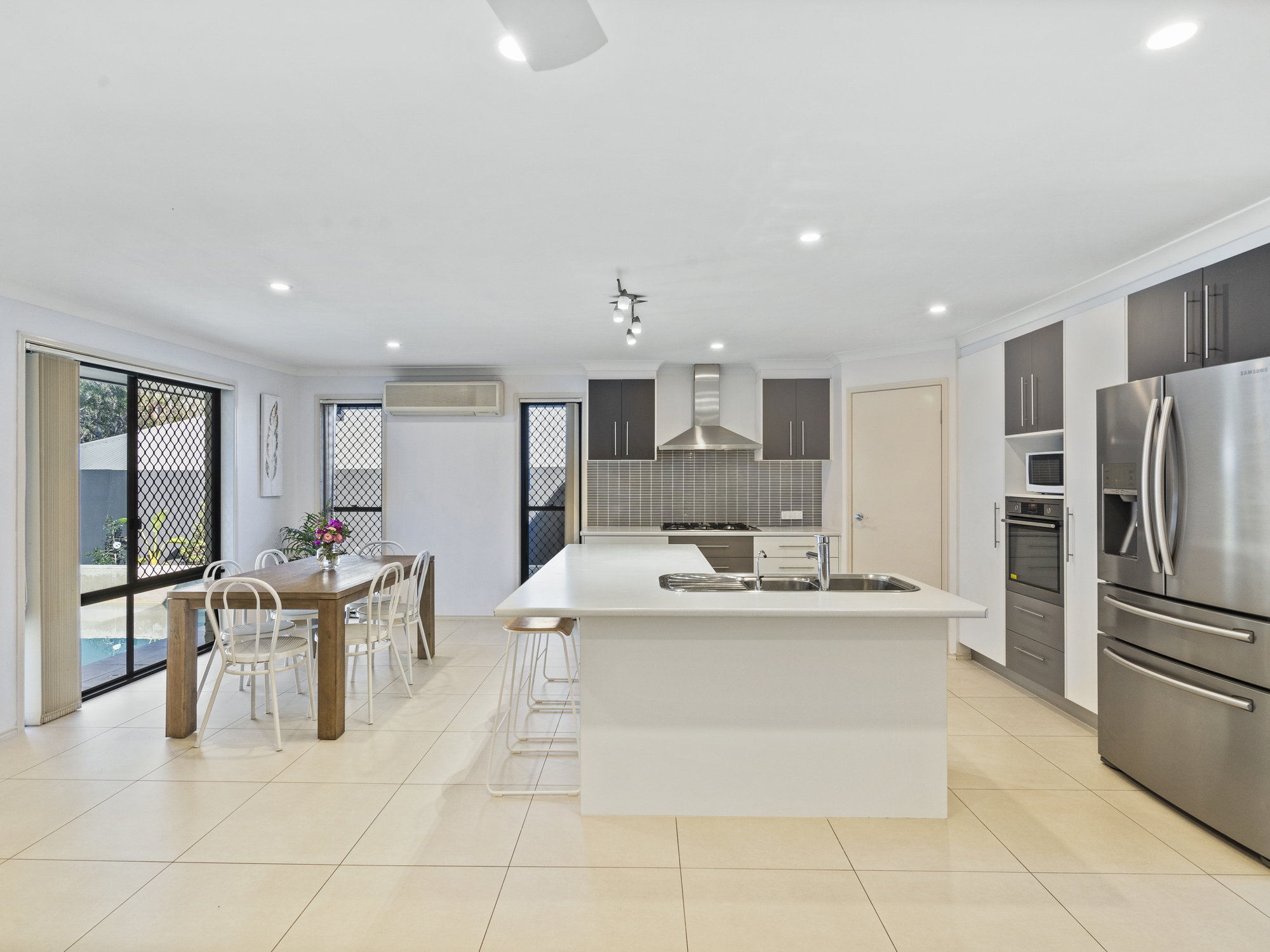 Proceeding past the foyer, lies exceptional kitchen space, overlooking the abundance of indoor and outdoor living that the home has on offer. The kitchen has no shortage of storage and preparation space and comprises of high-quality stainless-steel appliances, a five-burner gas cooktop, sleek neutral cabinetry, a large pantry and breakfast bar seating.