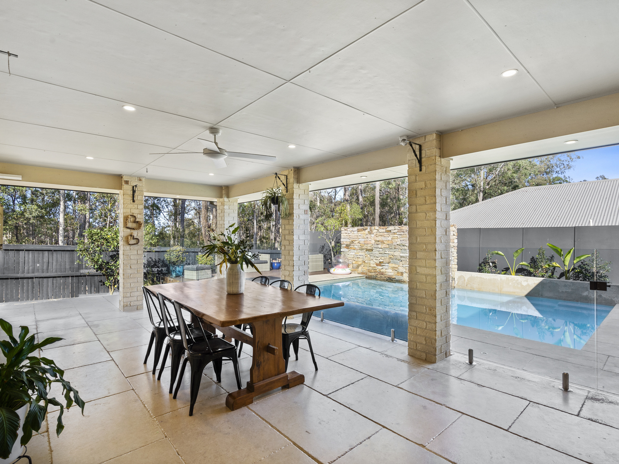 The outdoor entertaining space is equally as impressive, featuring a beautiful undercover area that ensures an unrivalled space for entertaining all year-round. The outdoor space overlooks the beautiful in-ground swimming pool and lush gardens that the home has on offer. The home backs on to Gum Street Reserve providing peaceful bushland outlooks and added privacy. The 620sqm allotment ensures that there is no shortage of grass space with plenty of room for the kids and pets.