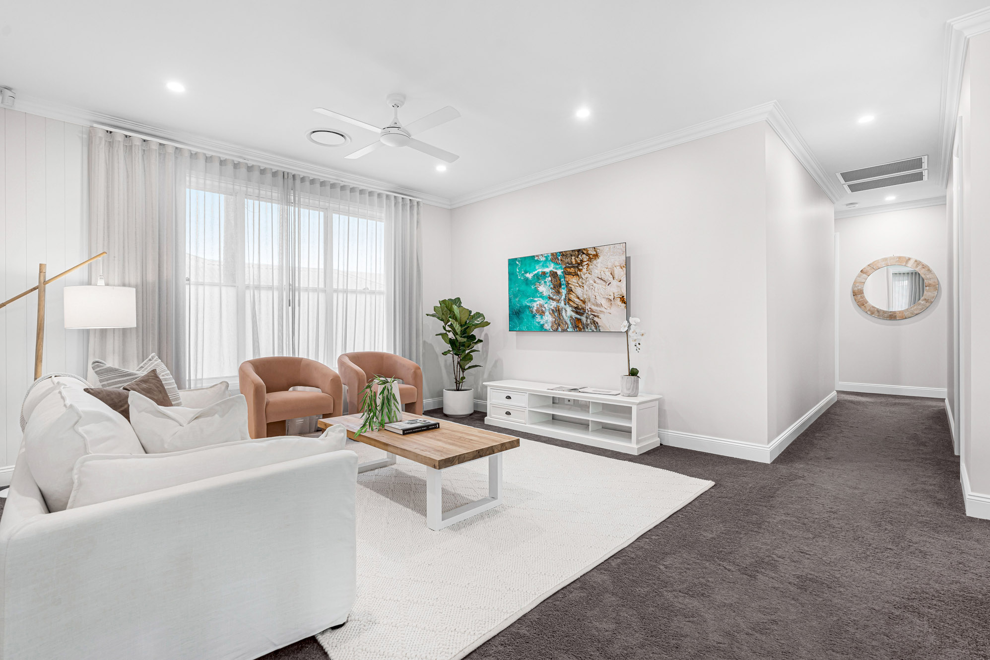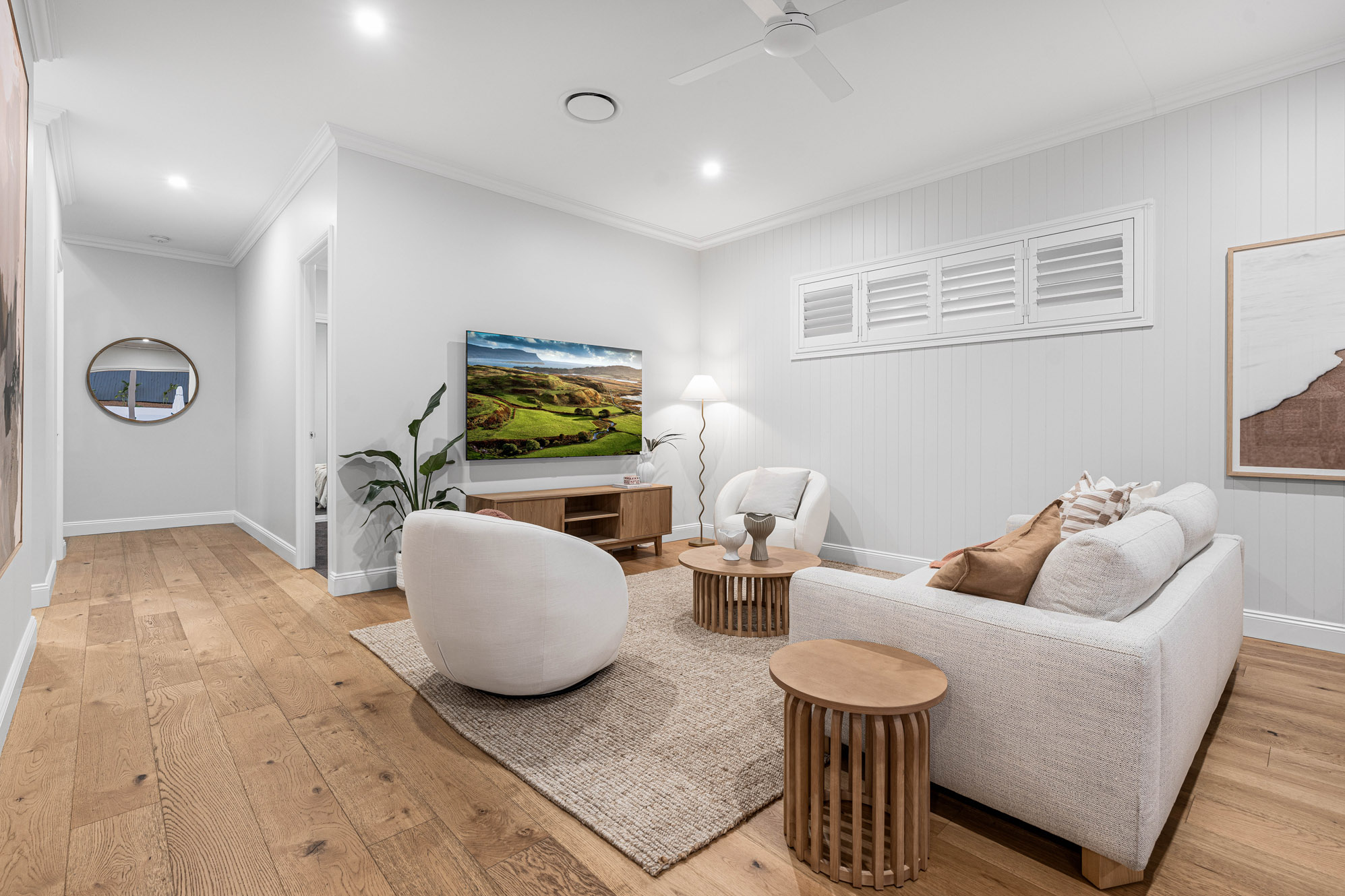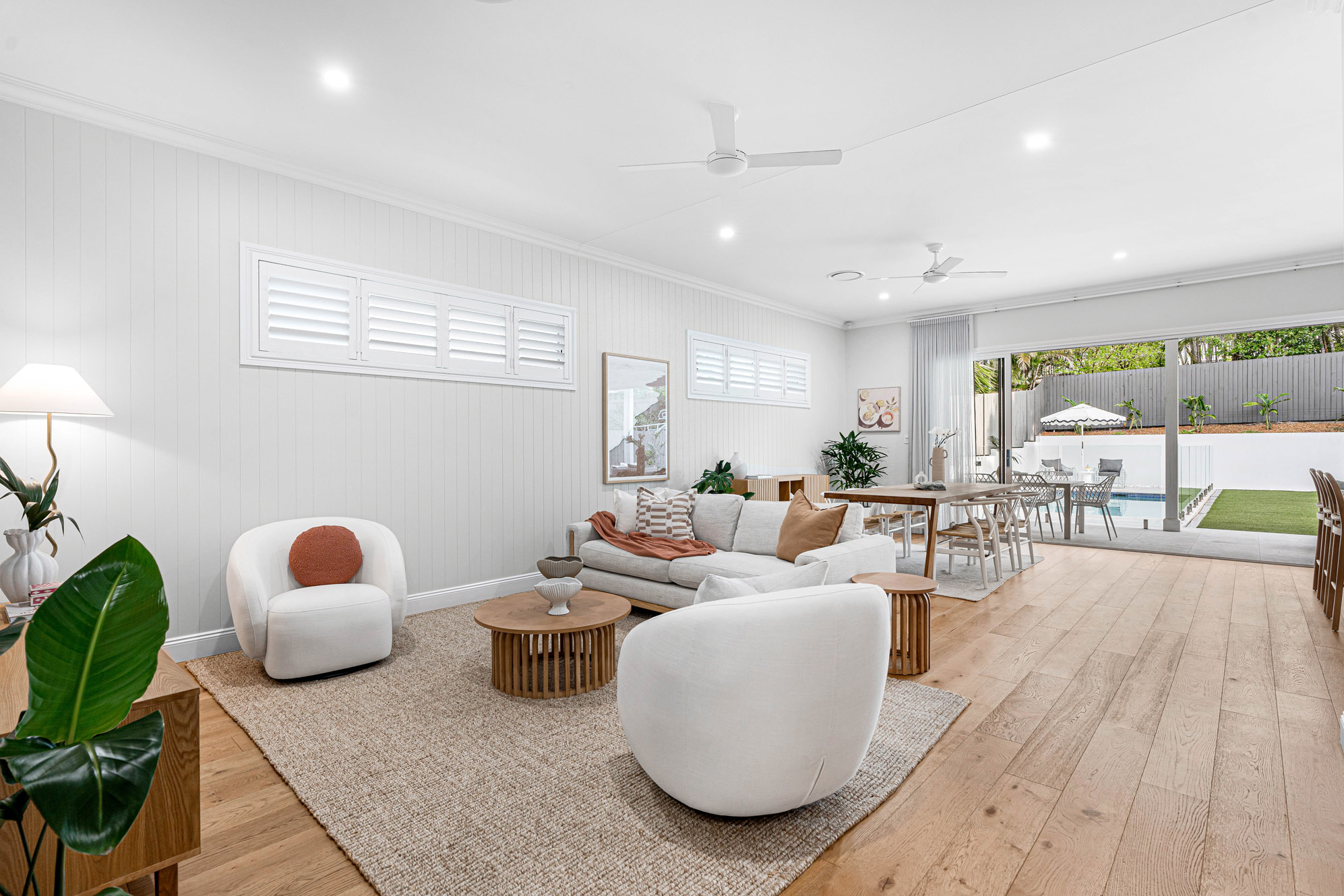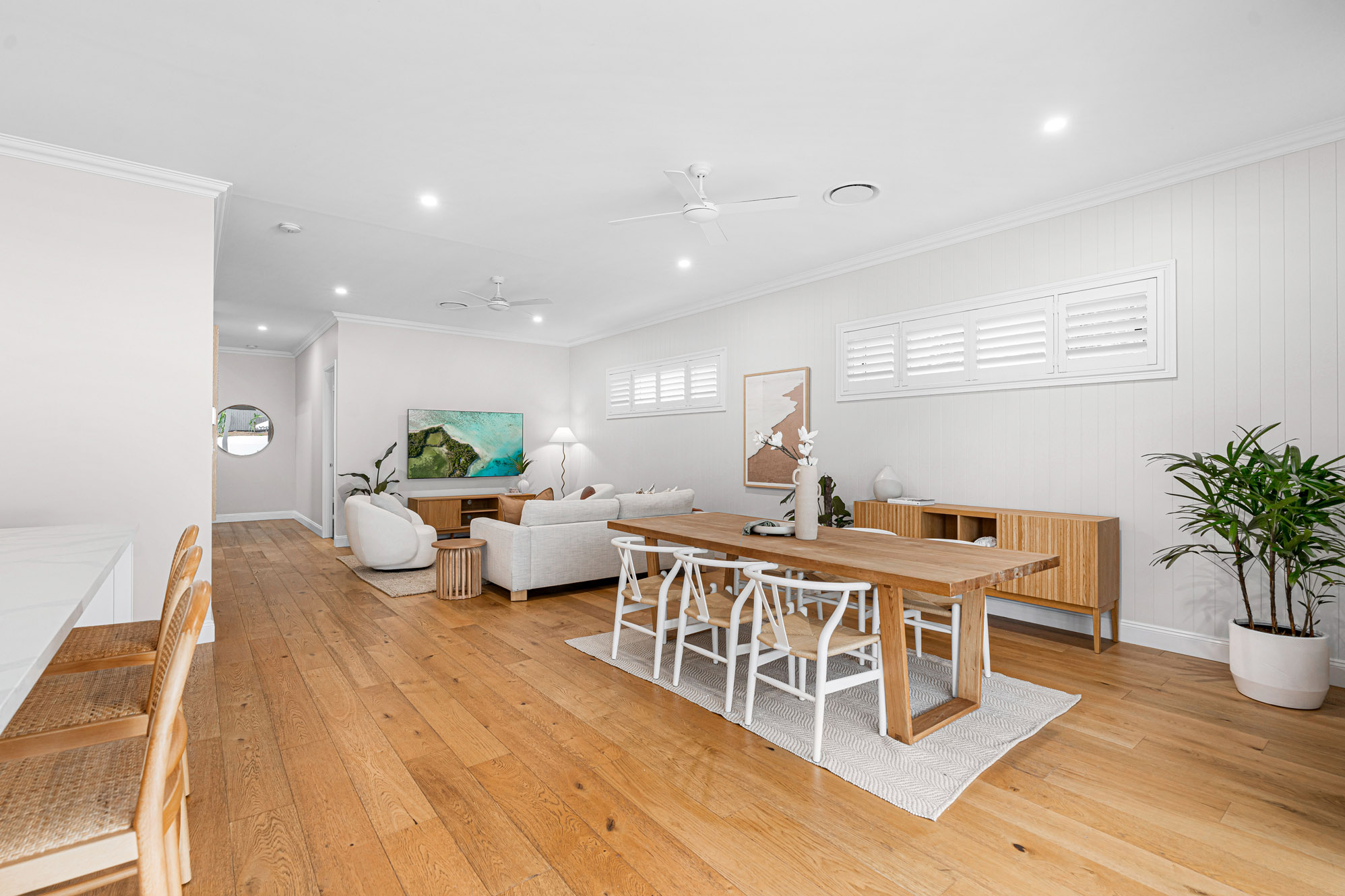 – Double lock-up garage with internal entry, plantation shutters, and the property is kept at the perfect temperature year-round with ducted air-conditioning