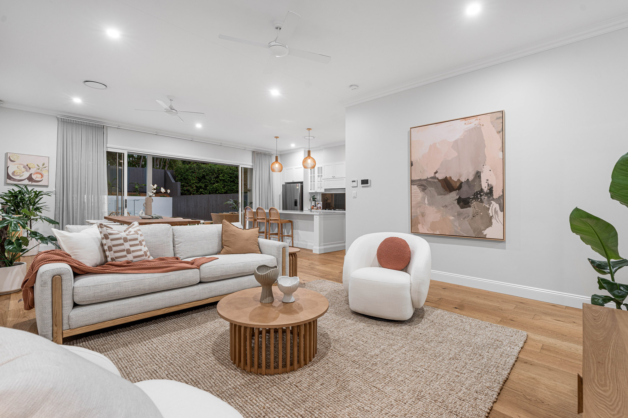 – Inside, the layout will impress with high ceilings, soft neutral tones and engineered oak timber floors throughout the ground floor