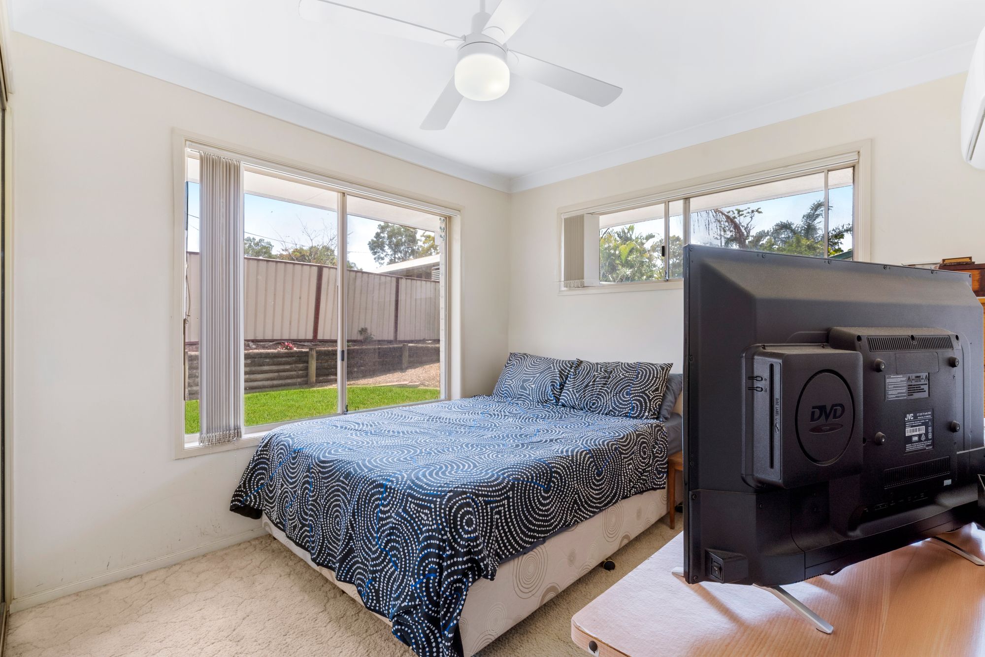 Bedrooms with carpets & built in robes with ceiling fans
