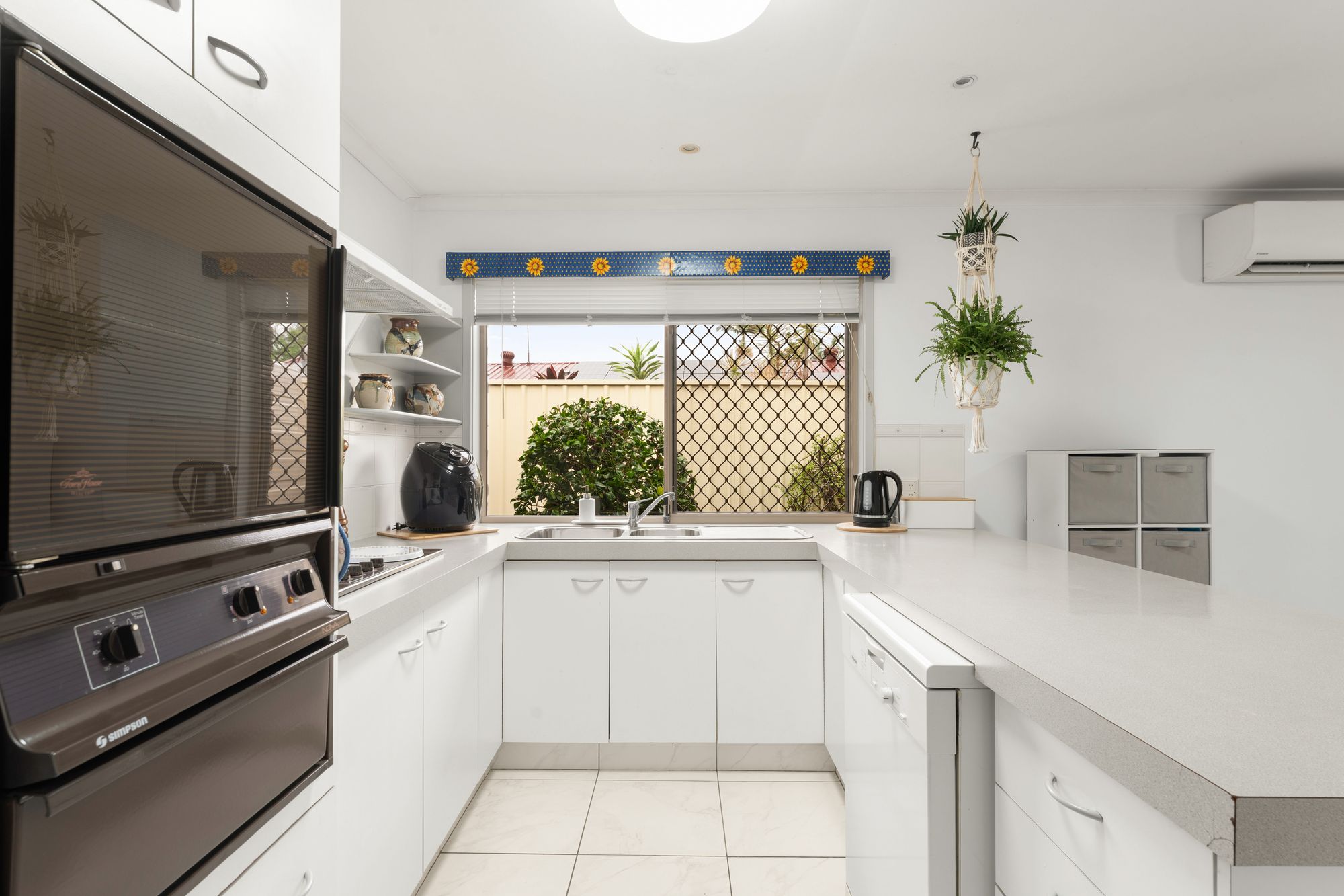 Functional kitchen with ample storage and bench space, adjoining the dining area