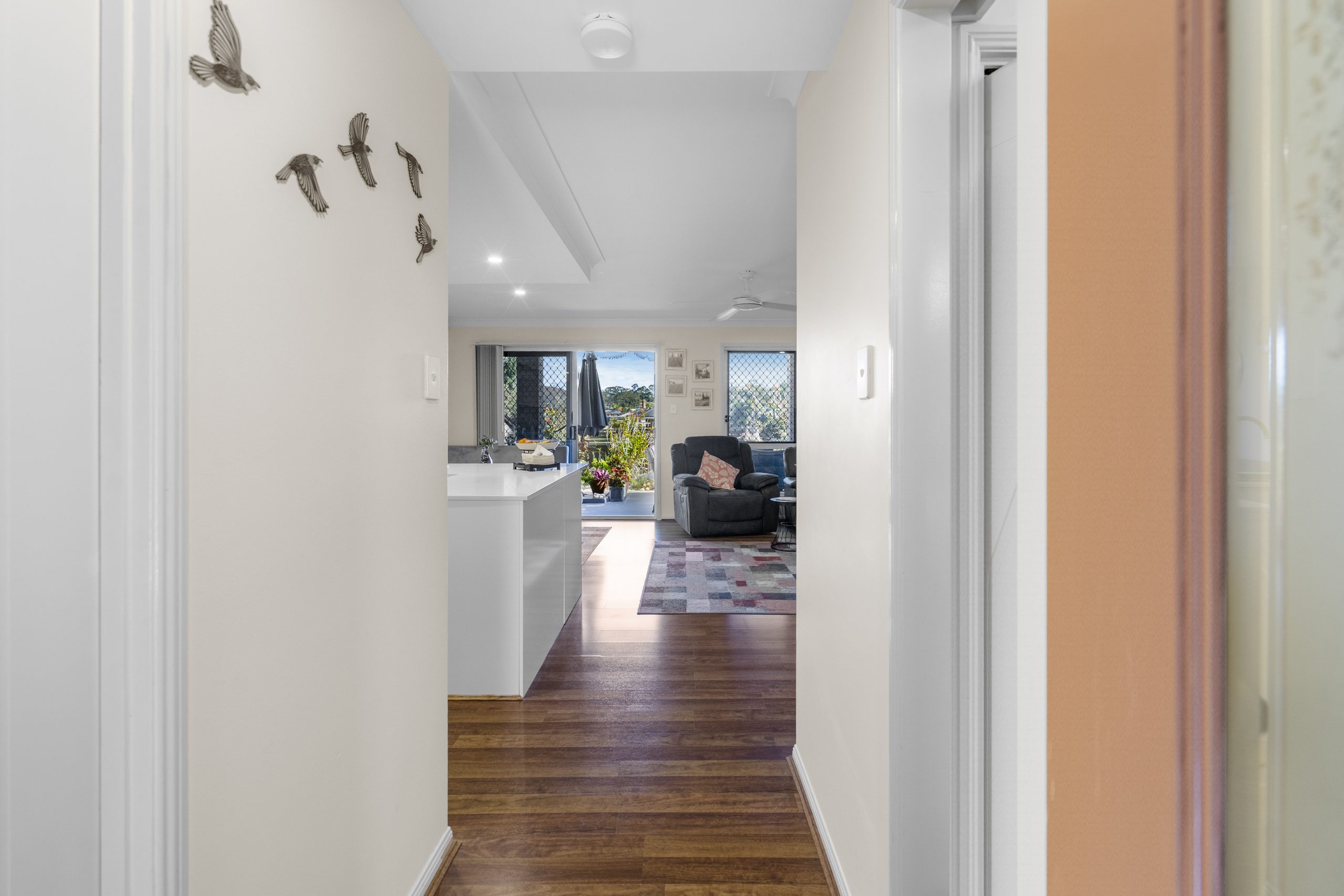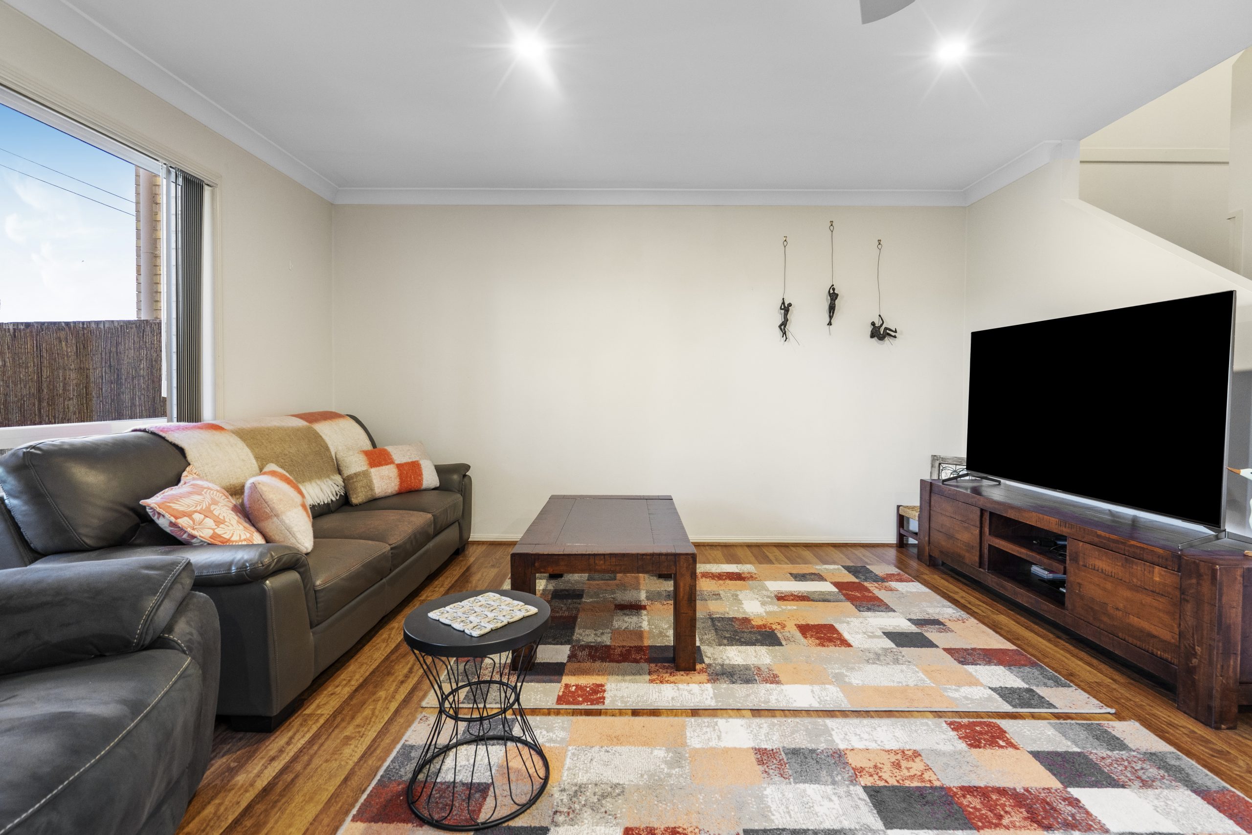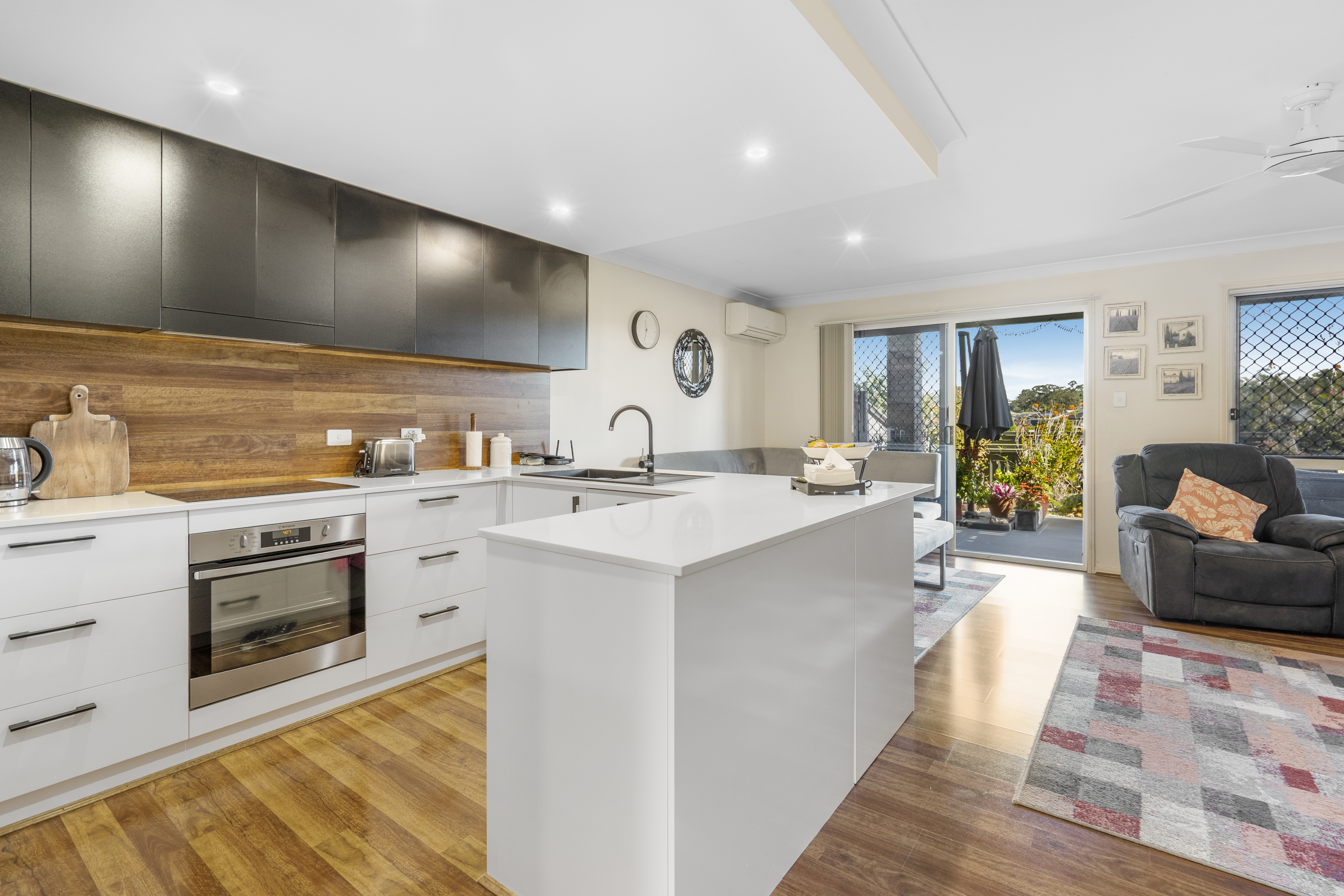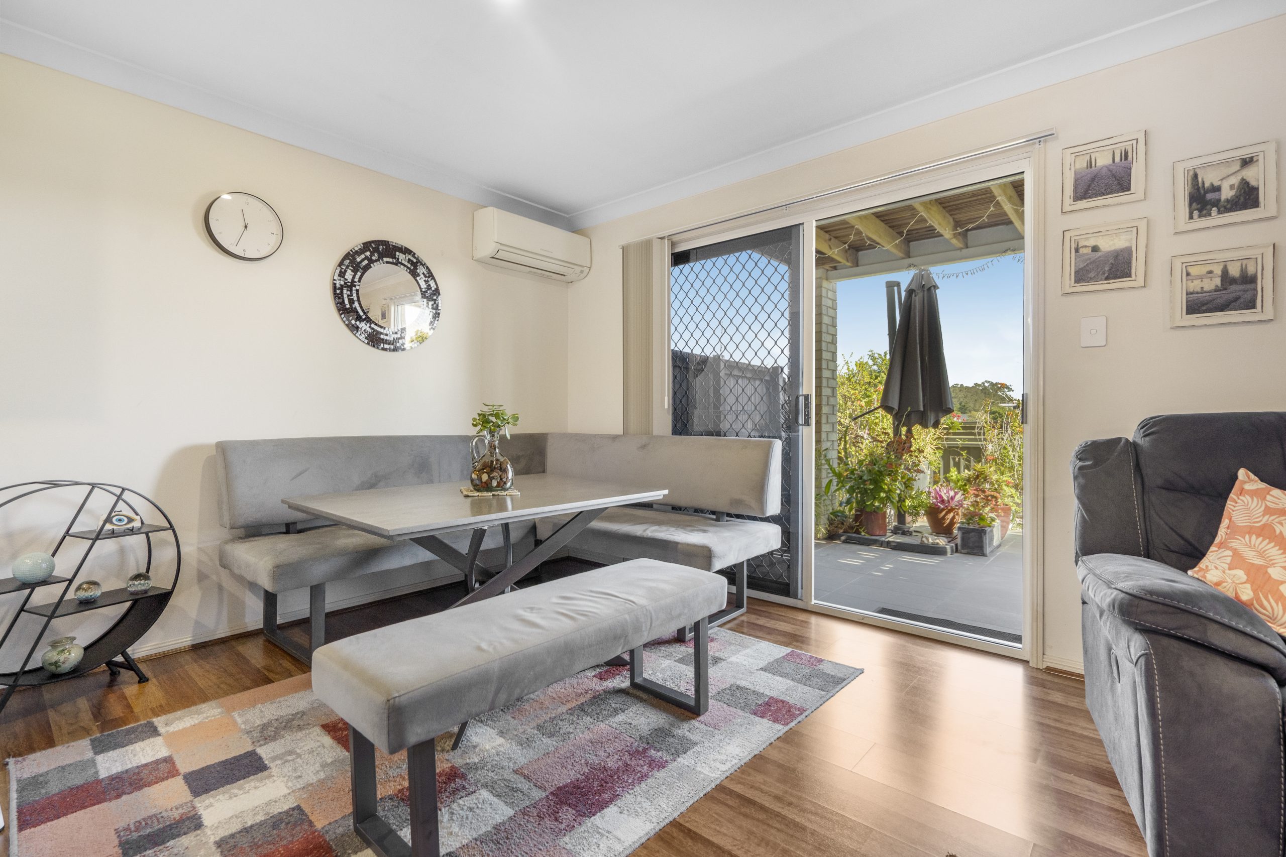• Open-plan living and dining with split-system air-conditioning equipped with timber floating floors.