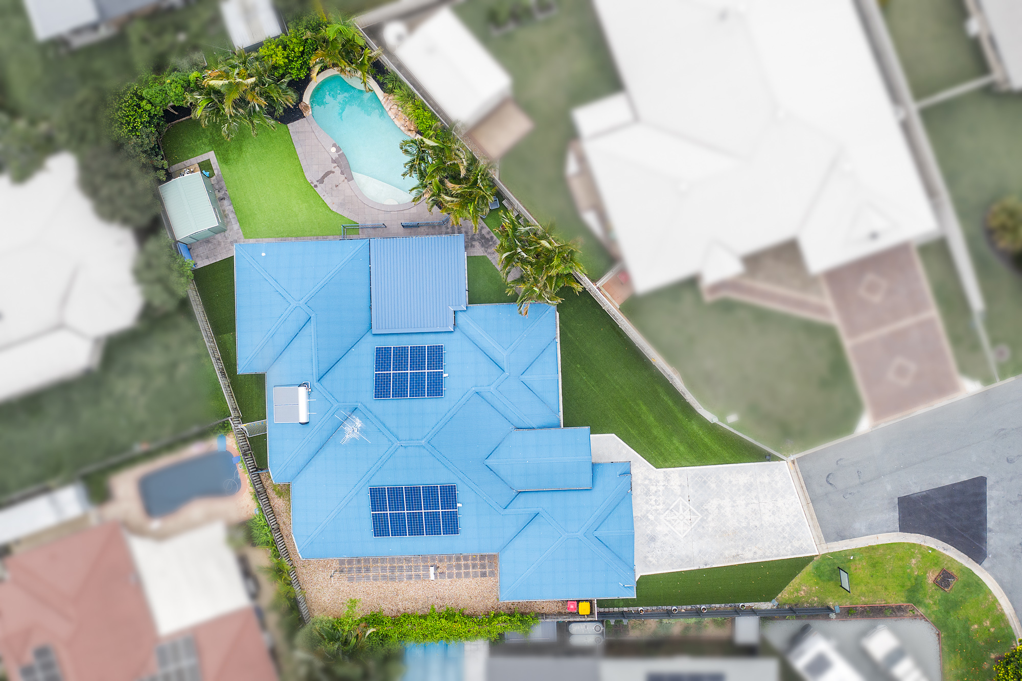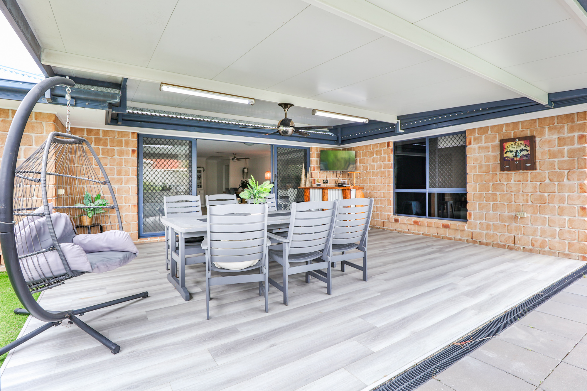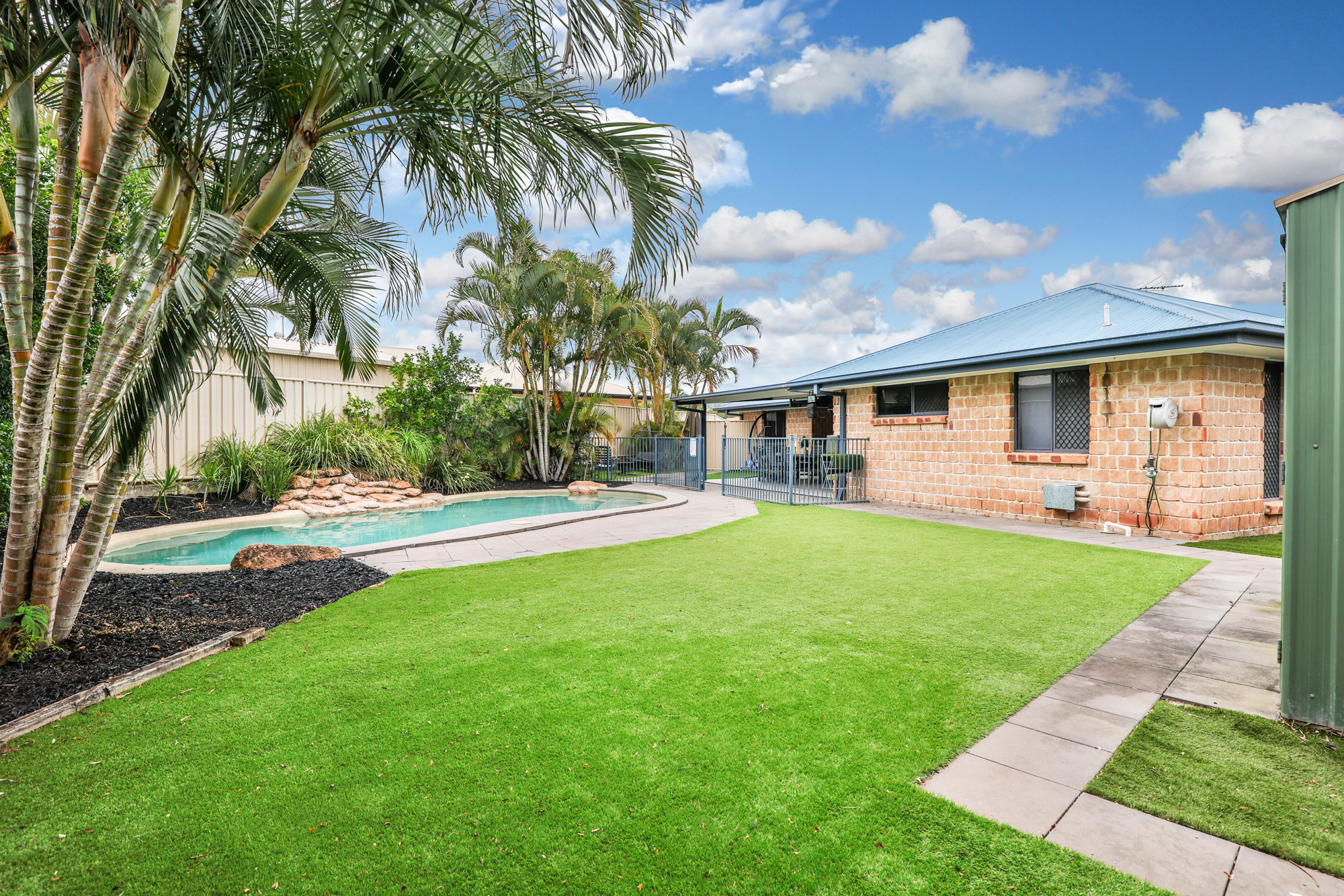 • Low maintenance artificial turf completes the landscape