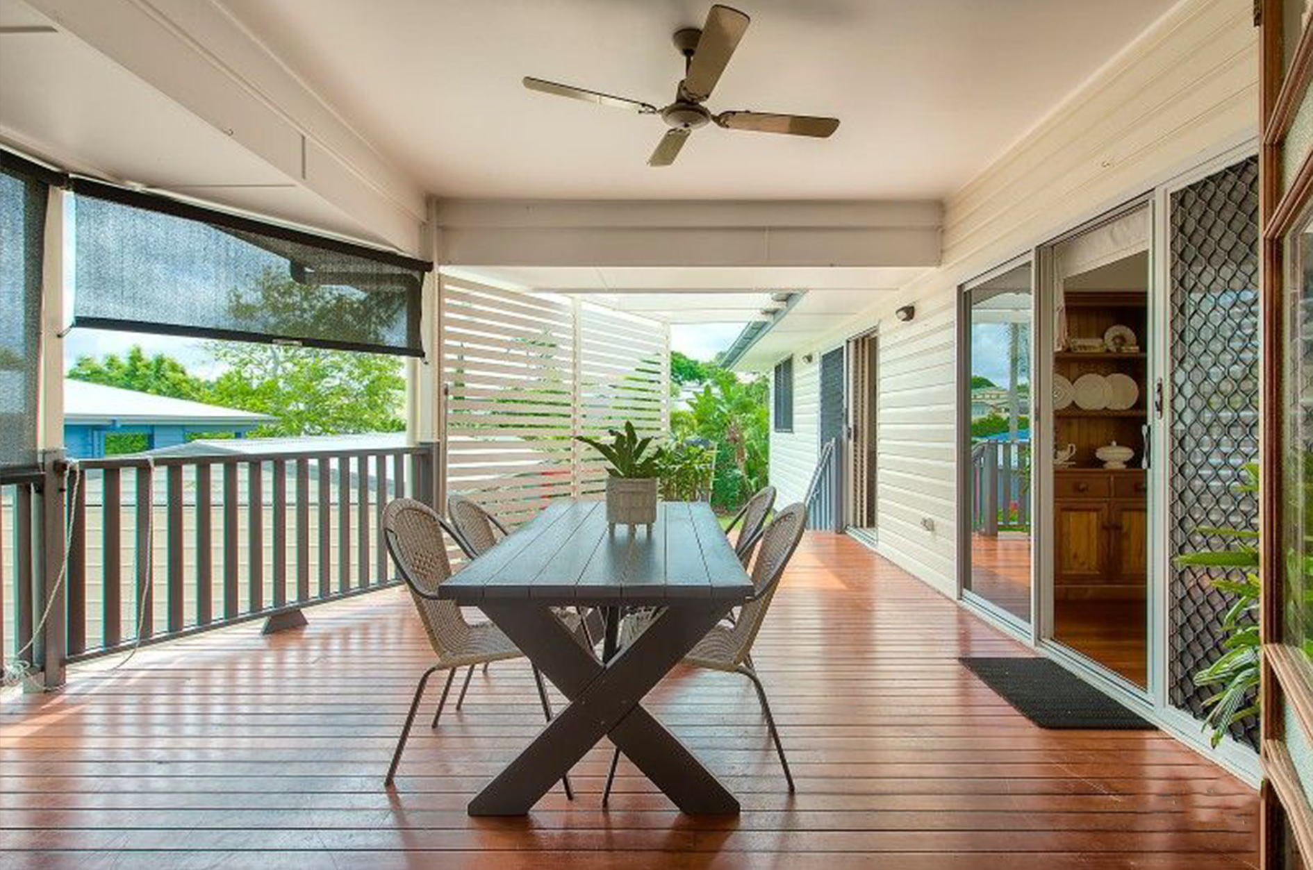 The expansive outdoor deck invites you to unwind and entertain, while the lush garden provides a serene backdrop for outdoor activities and relaxation. The outdoor entertaining area is perfect for hosting gatherings with family and friends, making it easy to enjoy alfresco dining in the beautiful Queensland weather.