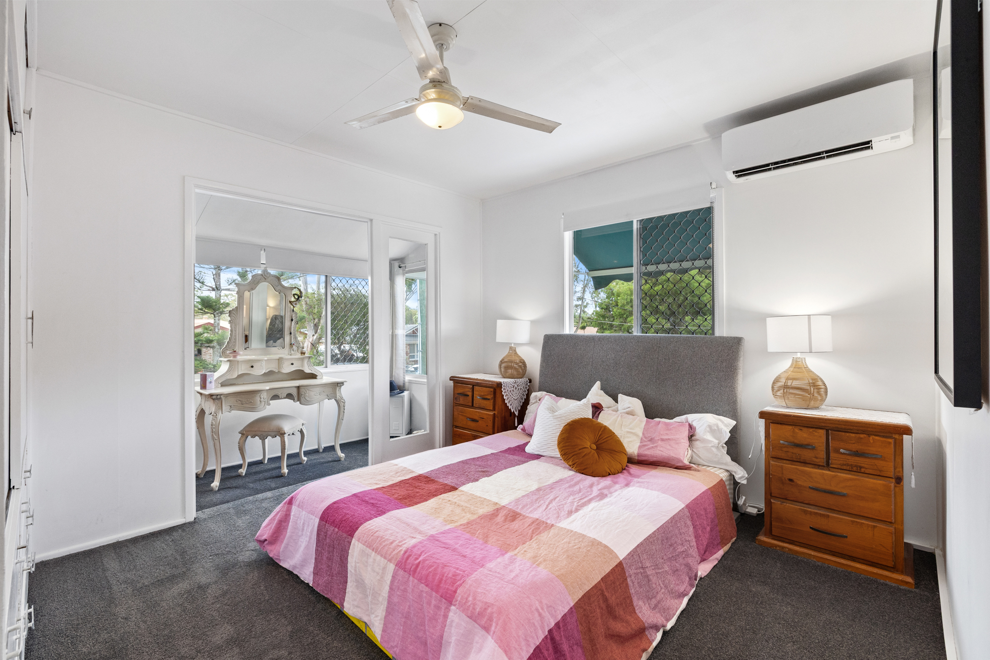 • Air conditioning and ceiling fans for year-round comfort