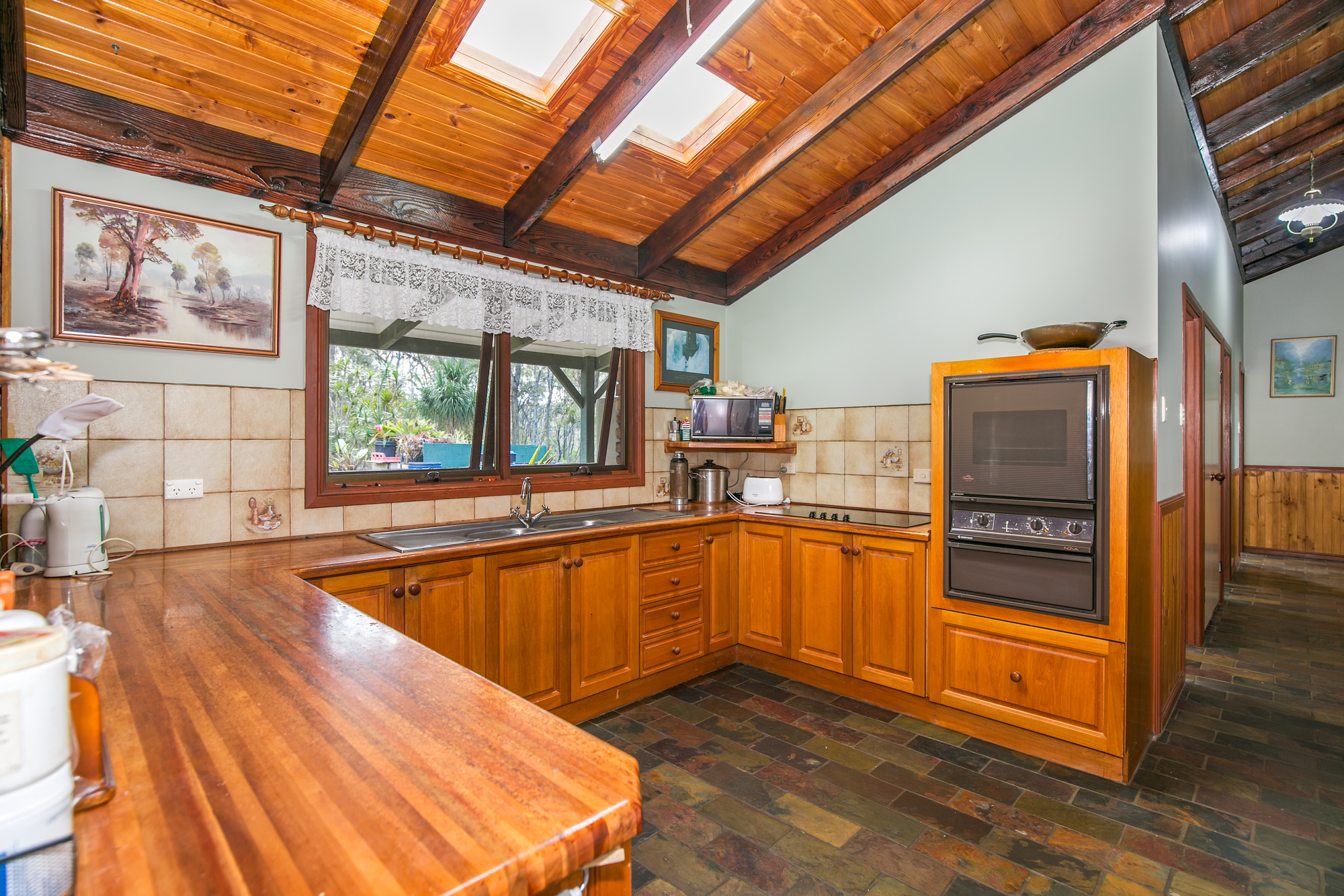 • Country style kitchen (with timber cabinetry, induction cooking, and ample bench & cupboard space)