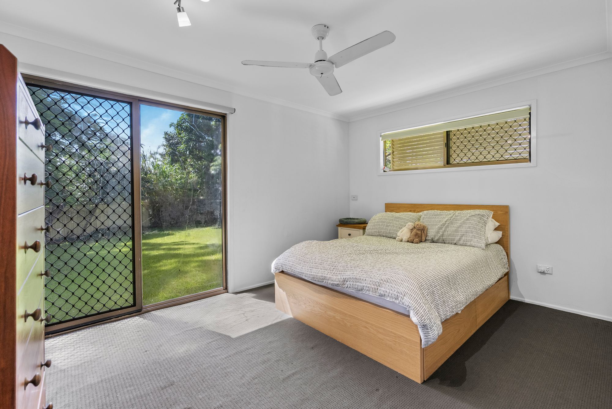 – Master Suite: A true retreat featuring two walk-in robes, a ceiling fan, and private direct access to the backyard.