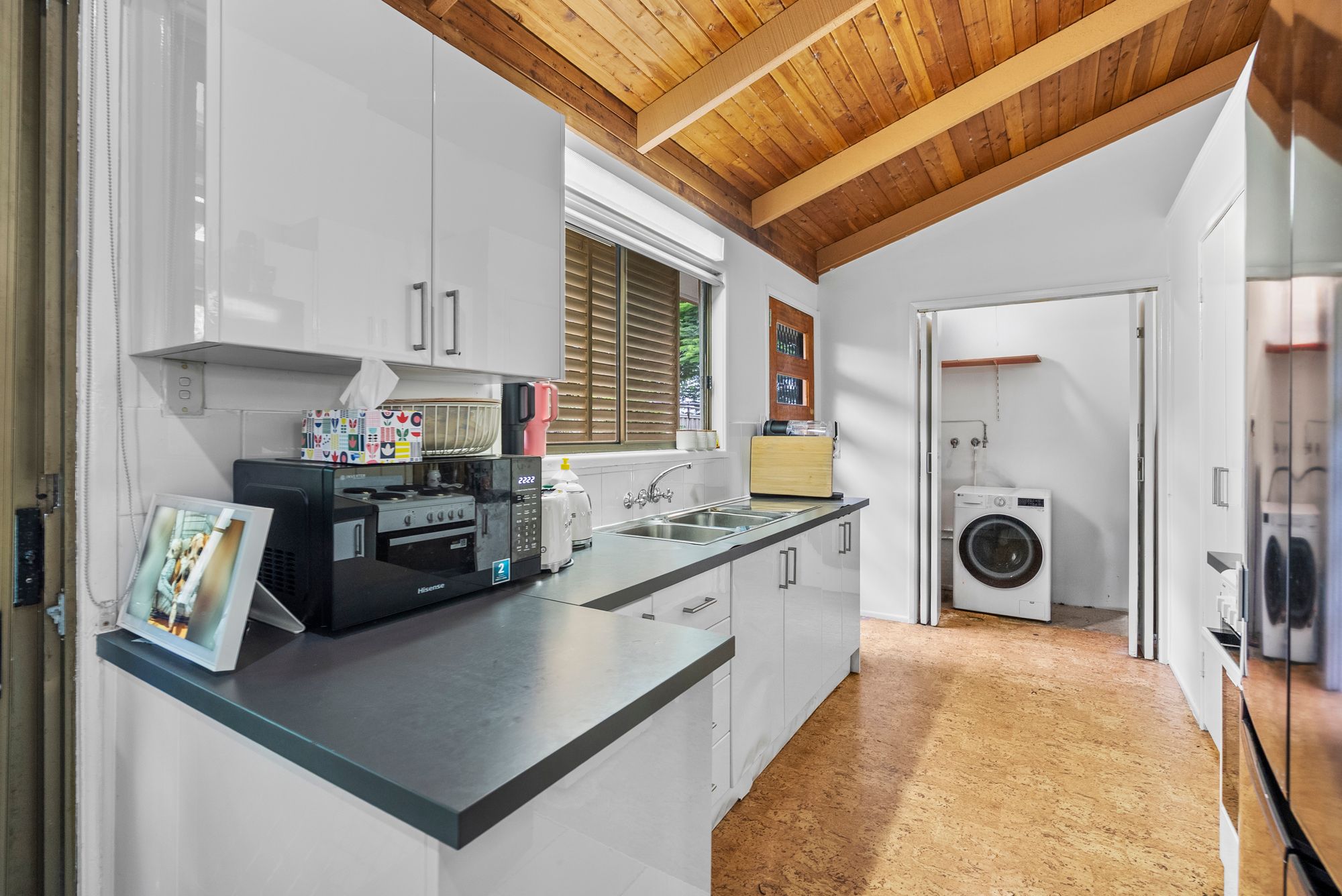 – Functional Kitchen: Well-appointed with an electric hotplate cooktop, oven, and ample storage cabinetry.