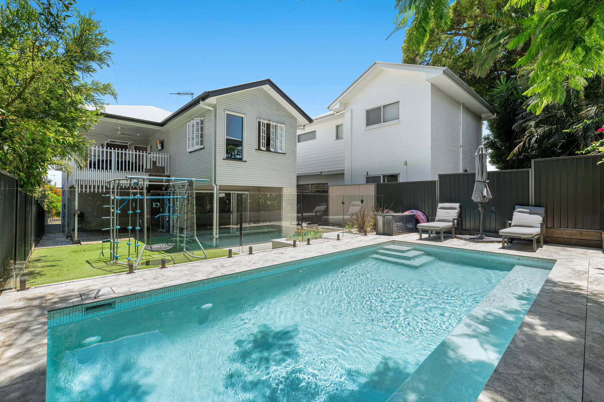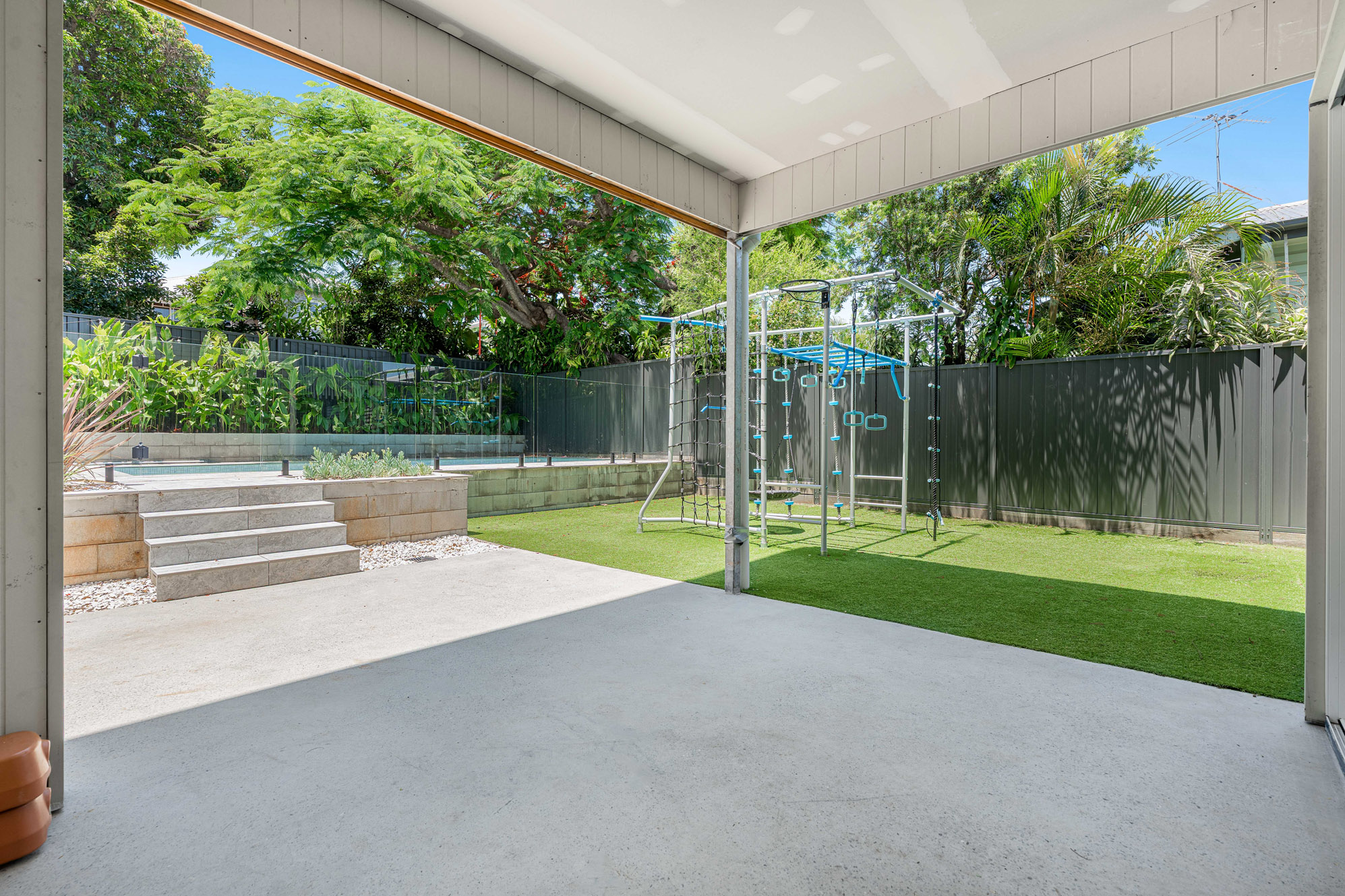 The lower level holds exceptional potential, with beautifully polished concrete floors, a bedroom, bathroom, study, laundry and large second living area laid out ready to be completed. This area flows out to duel entertaining decks, a synthetic grass play area and a stunning mineral swimming pool featuring sleek in-pool seating that runs the full length of the water perfect for relaxing, entertaining, and enjoying resort-style living at home. The hard work is done, allowing you to customise and complete the space to suit your lifestyle.