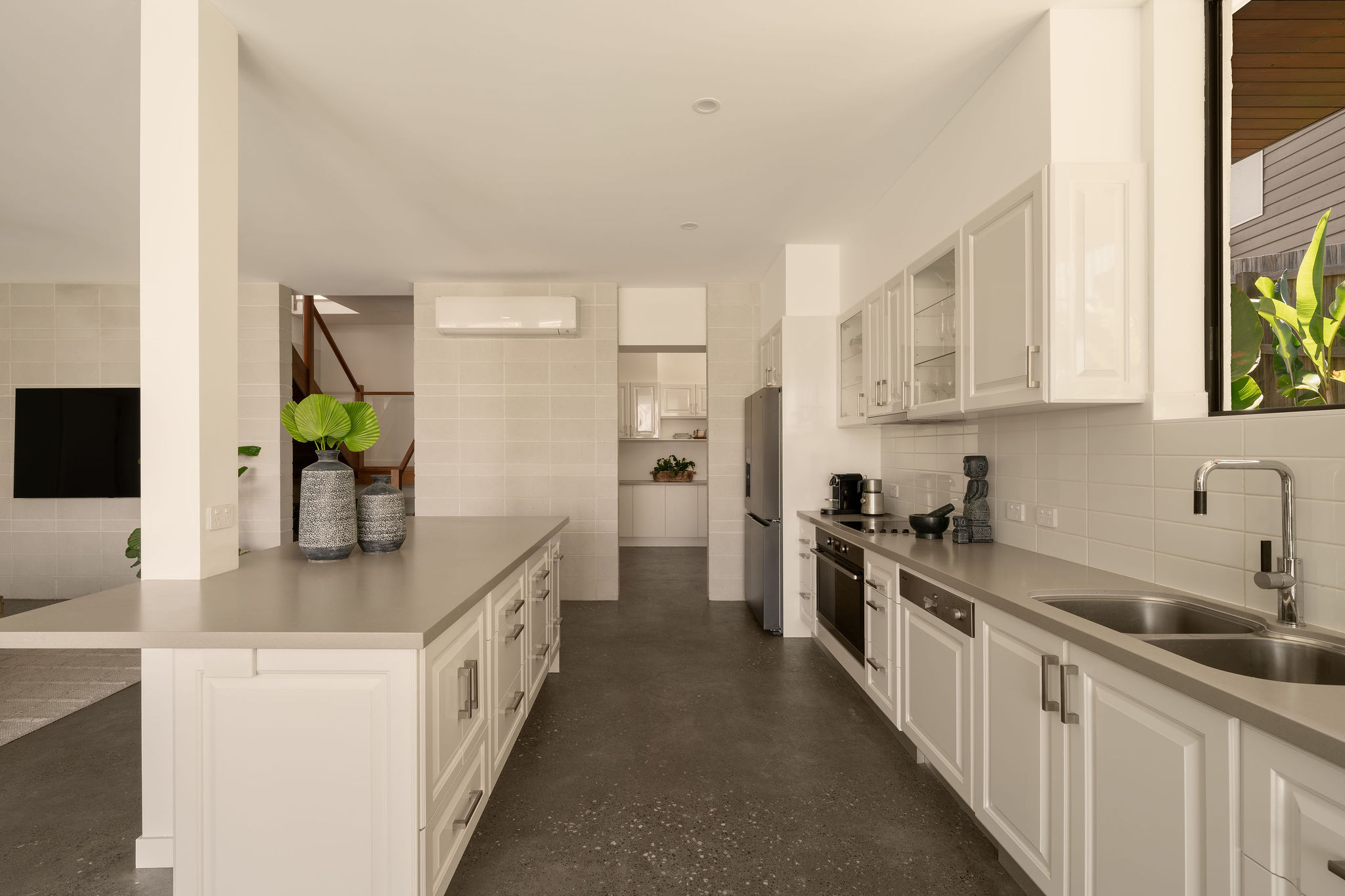 At its centre a huge kitchen backed by a butler’s pantry extension with more bench space than one could ever need.