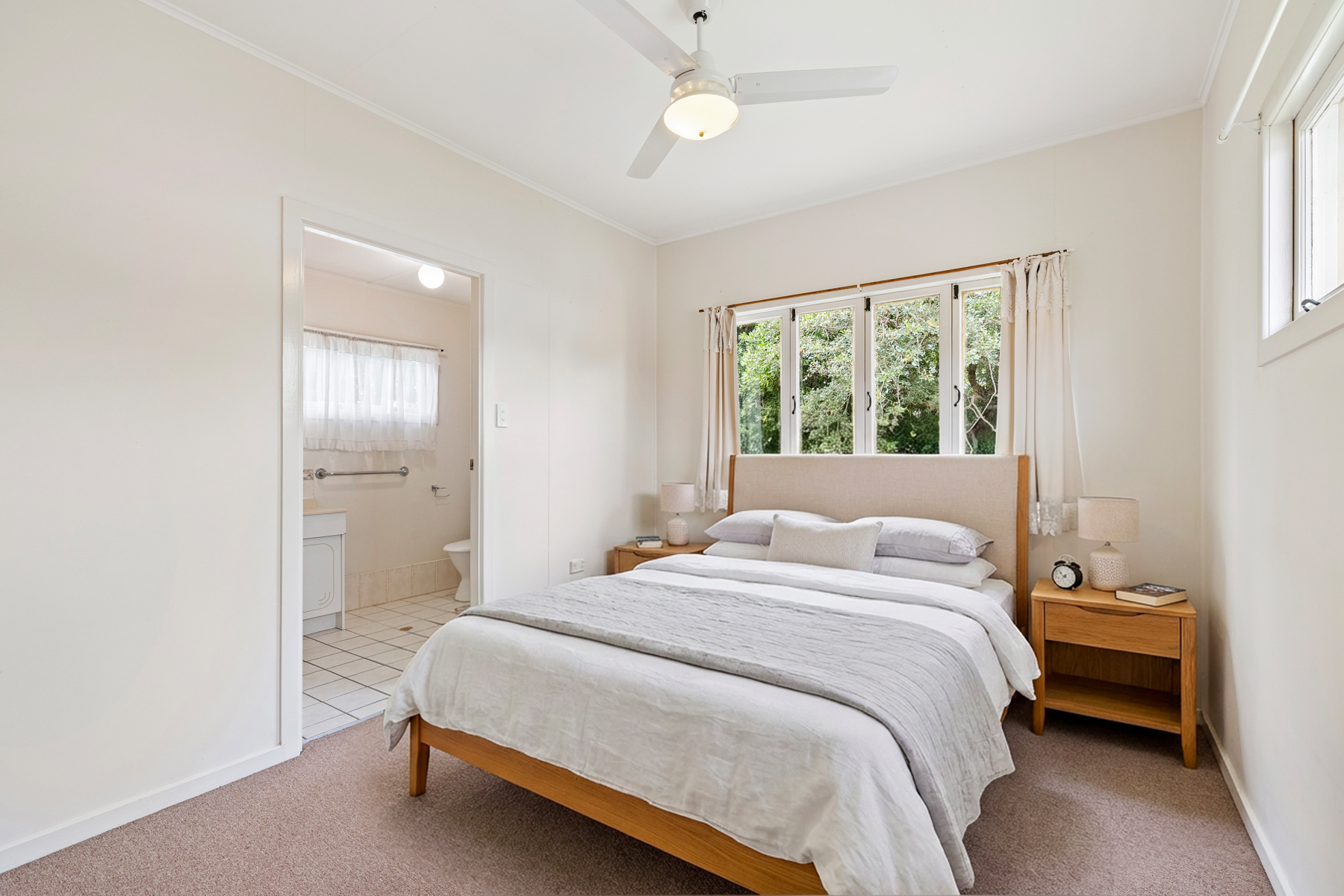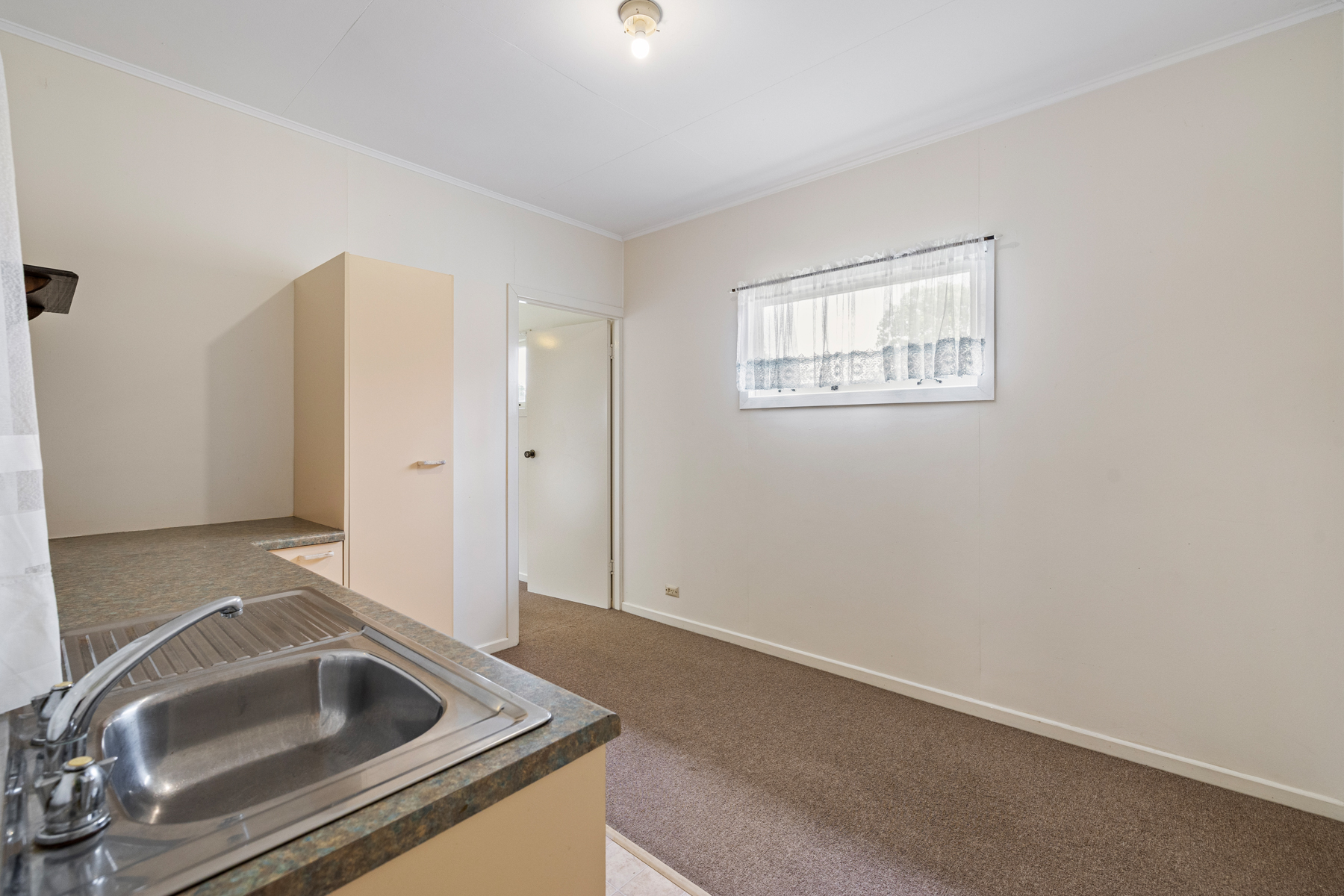 The first three bedrooms are well proportioned. Bedroom one and bedroom two both include ceiling fans, while bedroom three features French doors that open directly onto the rear veranda, offering excellent indoor-outdoor connection. The eat-in kitchen is functional and spacious, equipped with an electric upright stove and plenty of scope for future upgrades.