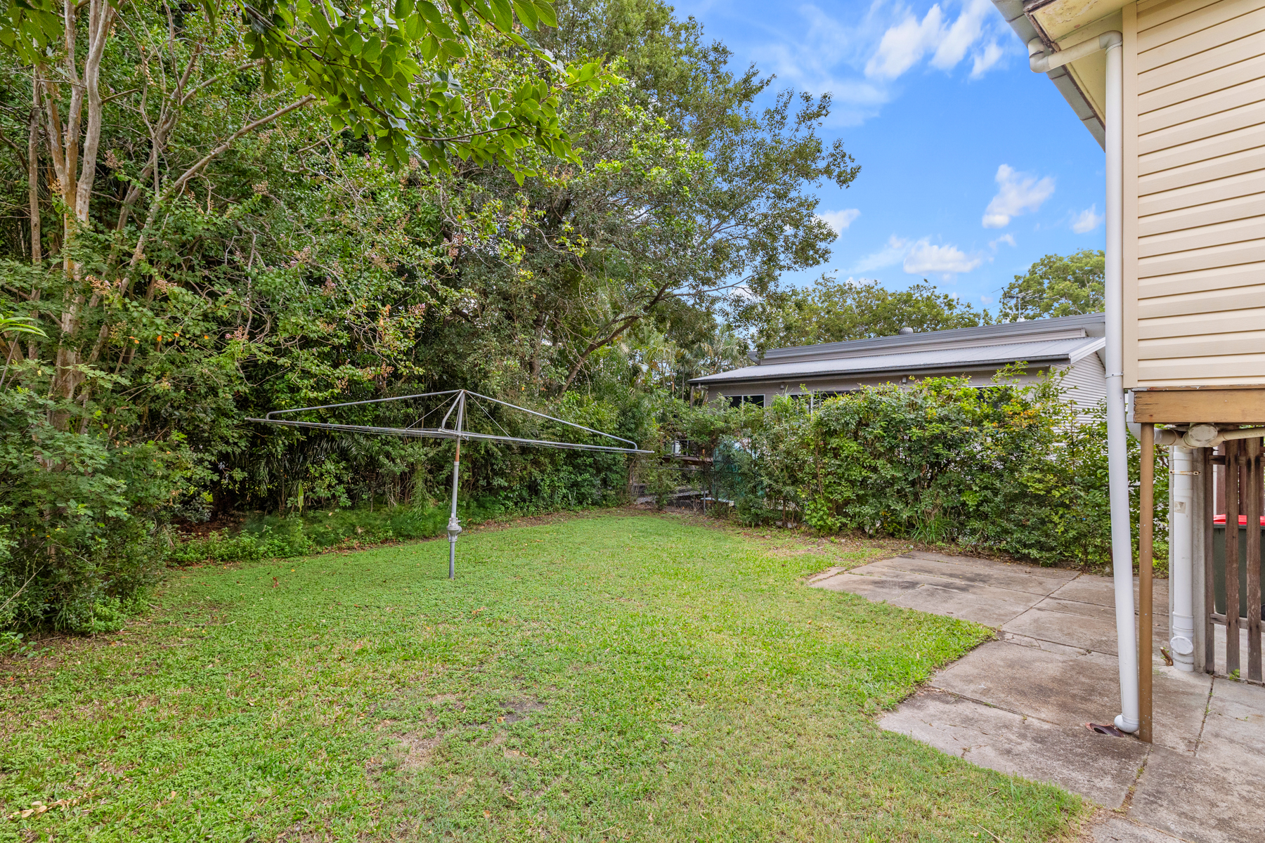 Outside, the fully fenced backyard is exceptionally private, enhanced by established trees that provide natural screening. Side access and single-car accommodation under the house add practicality, while the under-house area also offers substantial storage space.