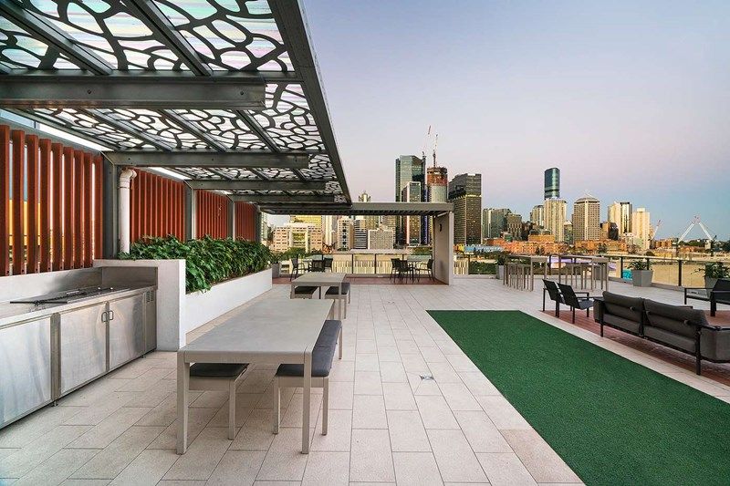 The rooftop entertainment area also boasts stunning views of Brisbane City and includes resort style facilities, such as a roof top spa, spacious entertaining, and relaxation areas.