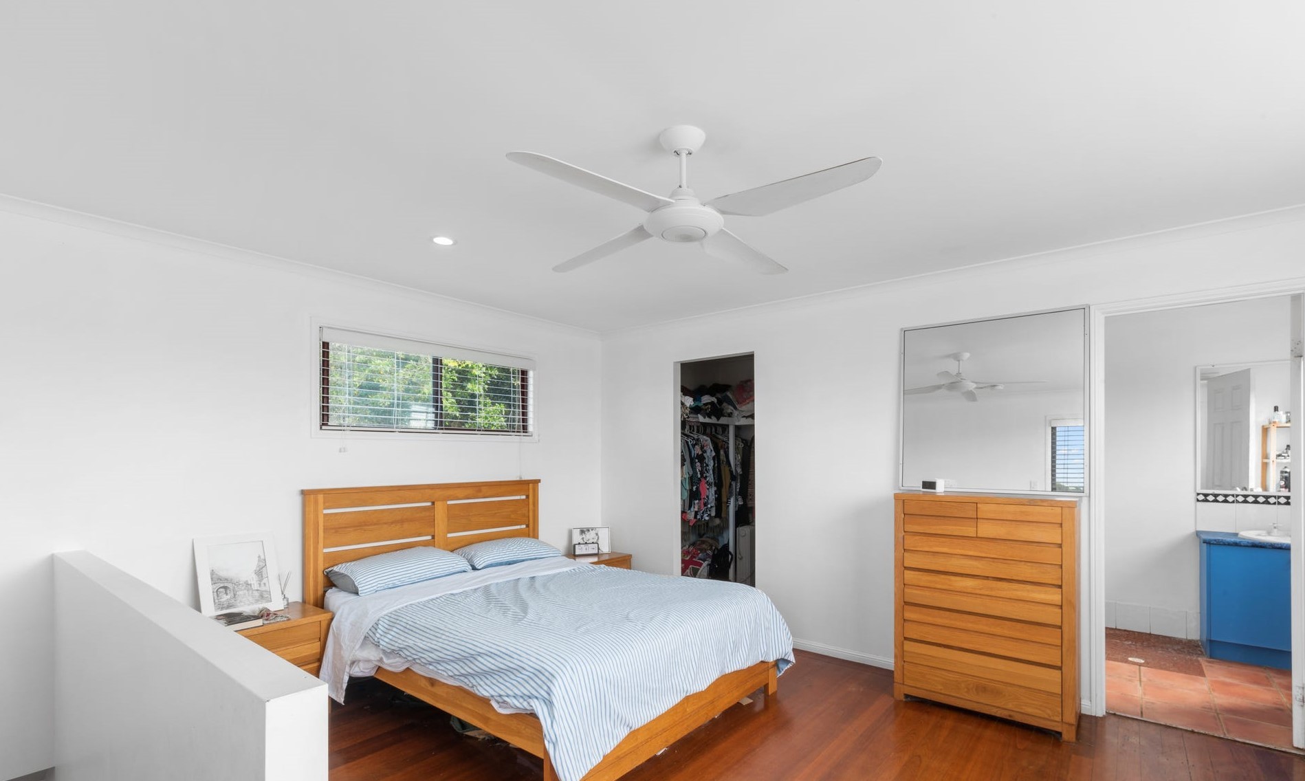 Spacious top-floor master suite with walk-in robe, ensuite, and ocean views