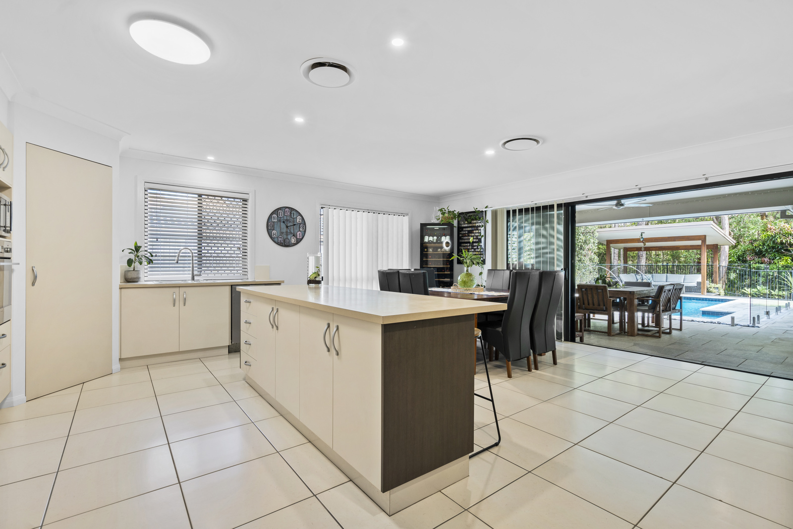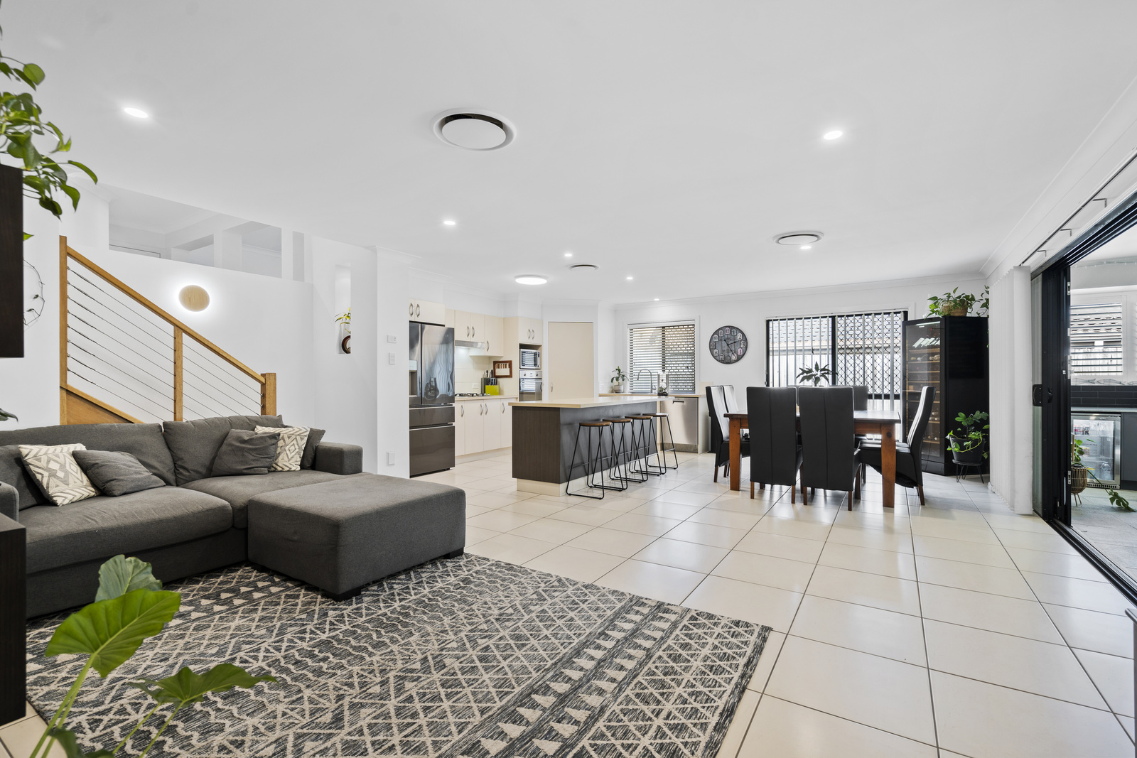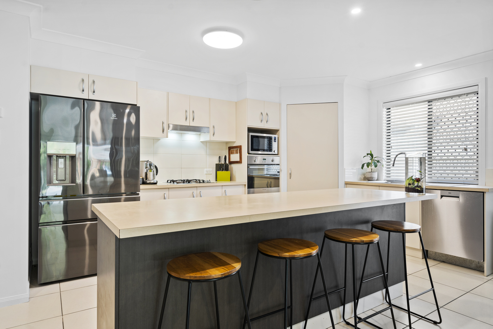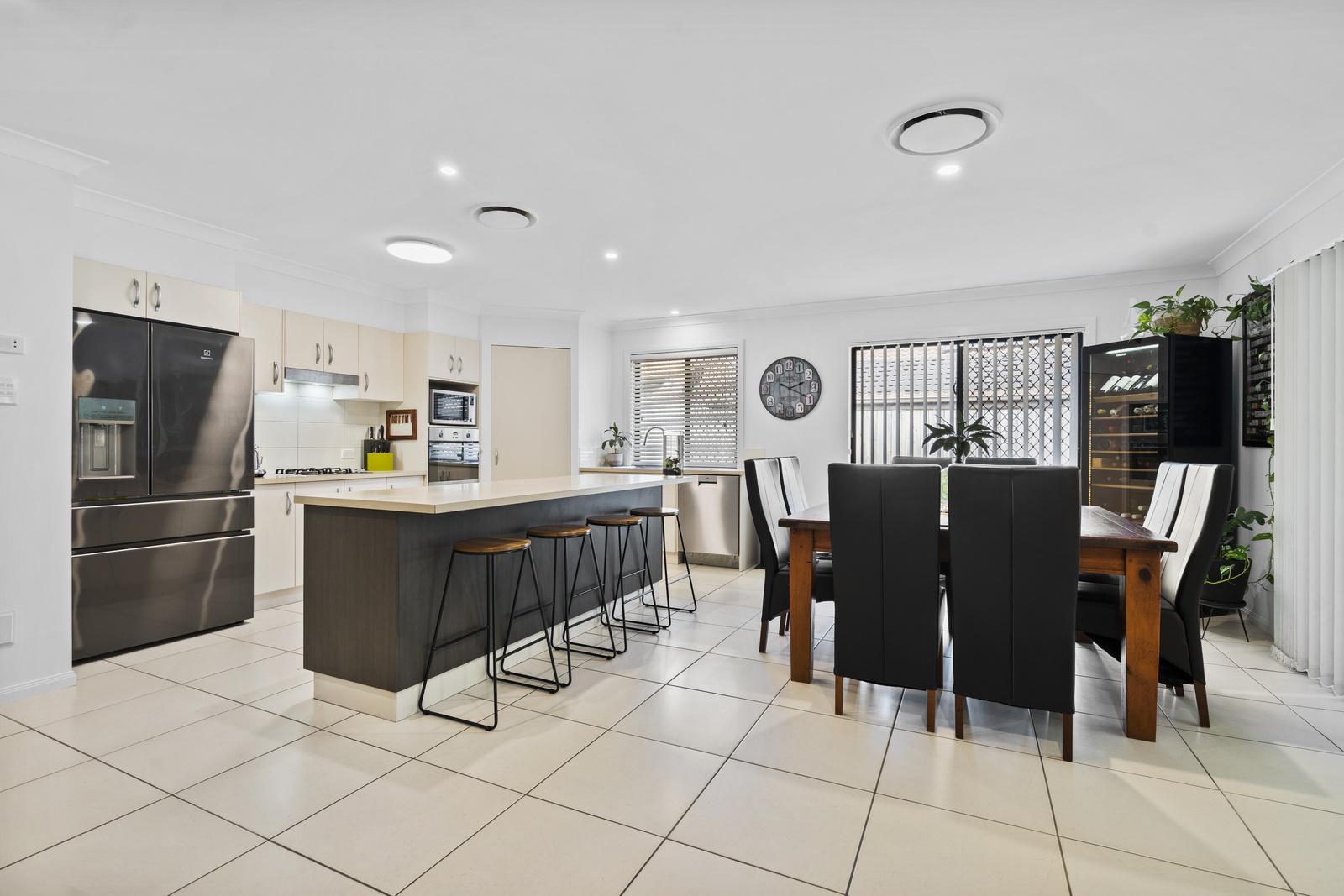 • Large modern kitchen/dining space with island bench, gas cooktop, stainless appliances & plenty of storage