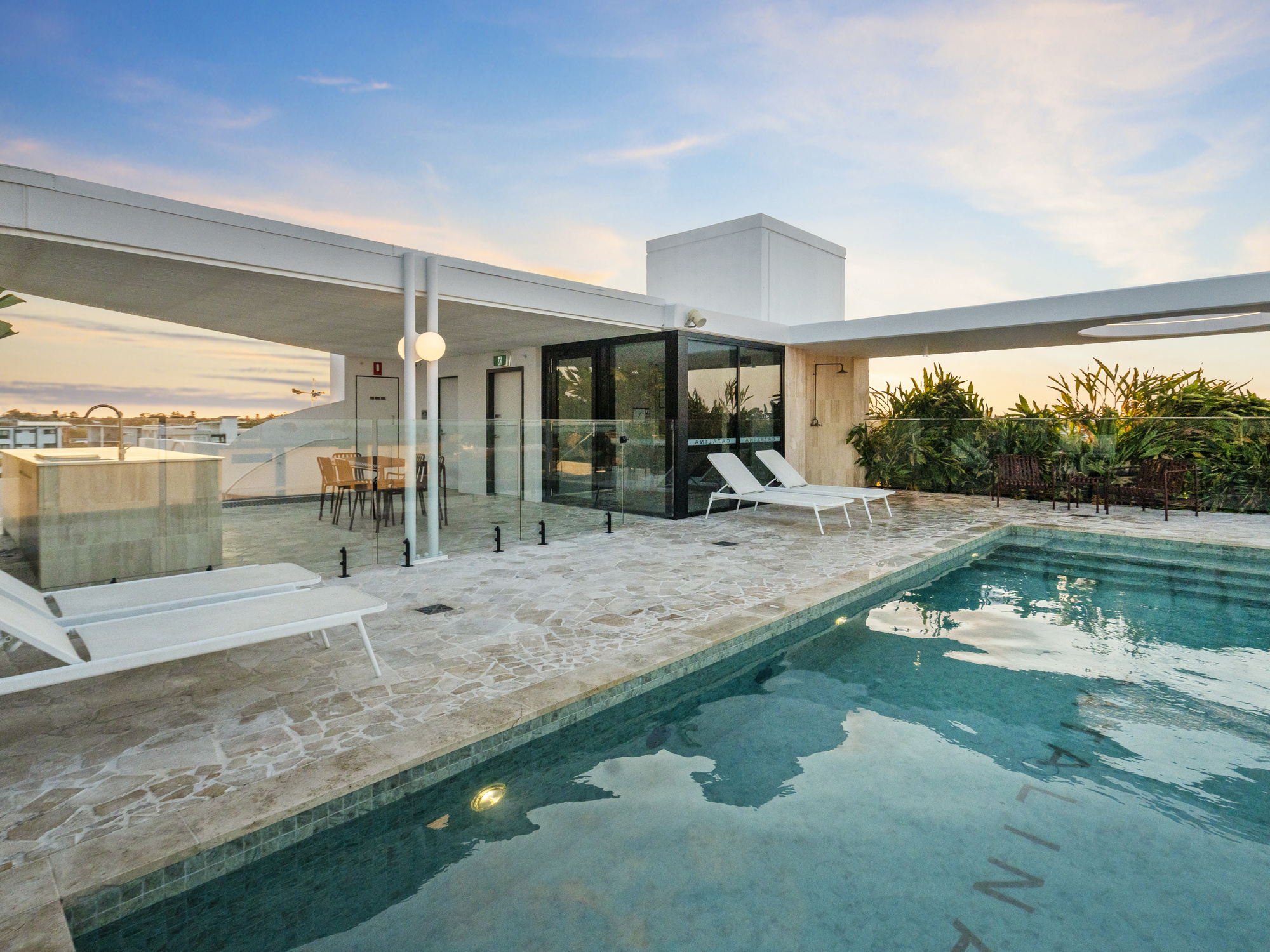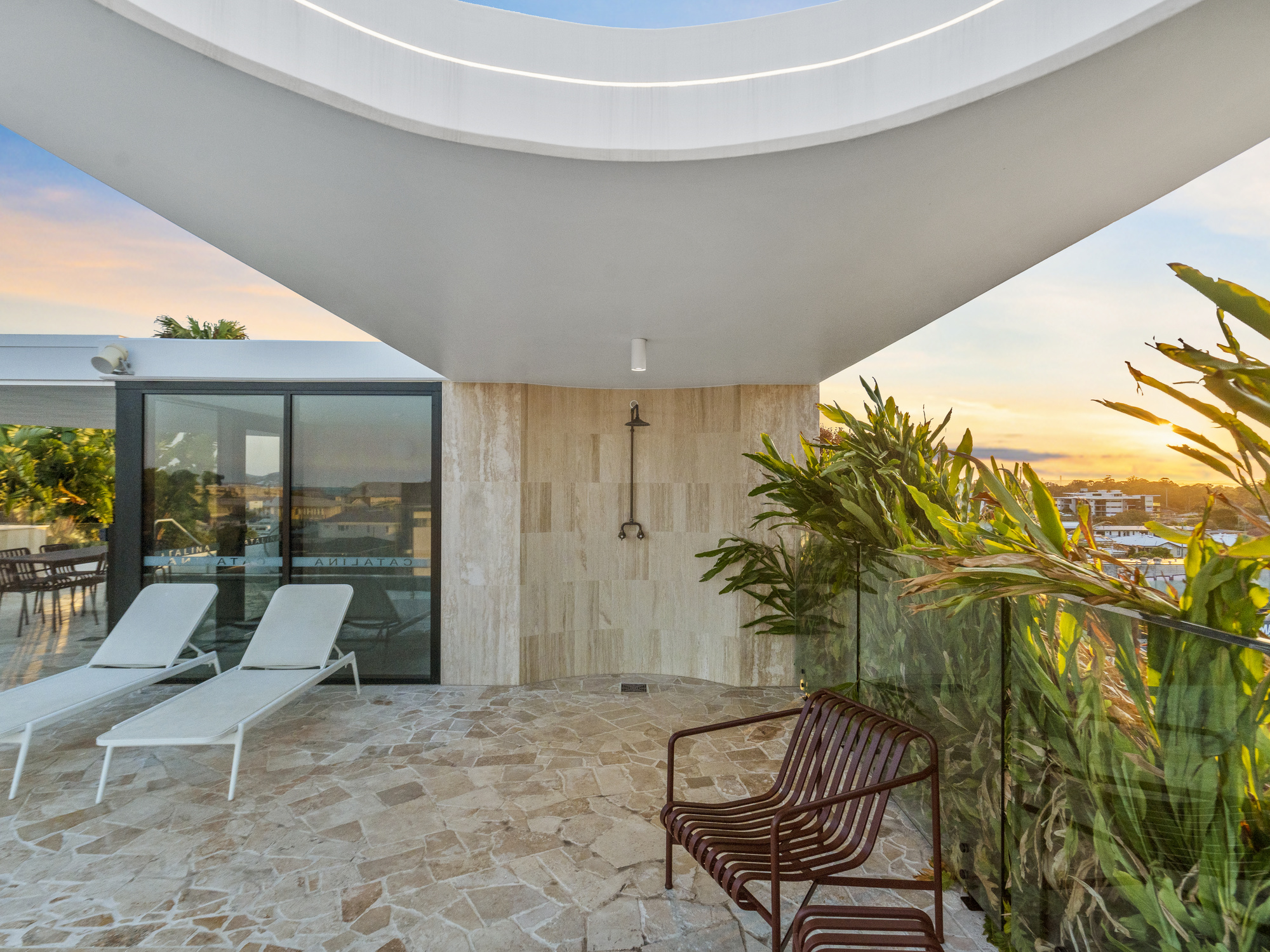 • Exclusive resident rooftop terrace with heated pool, BBQ facilities, outdoor shower and stunning bay views