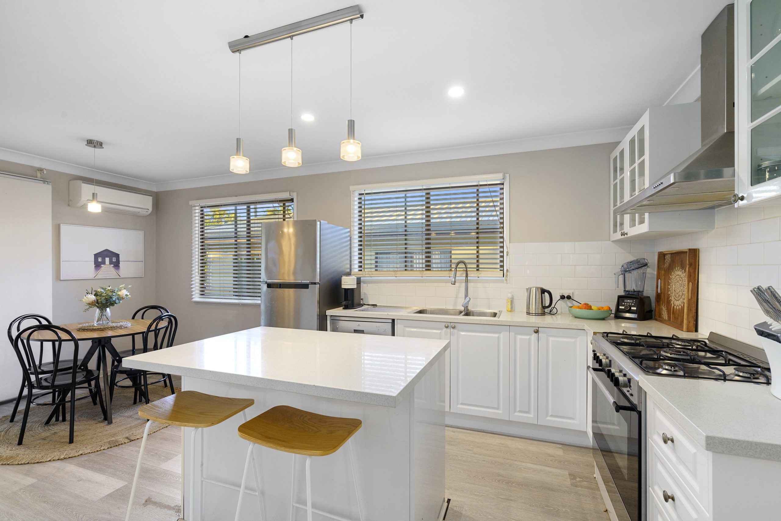 – Beautiful kitchen with large island bench and stainless steel appliances including dishwasher, 900mm oven, and 5 burner gas cooktop.