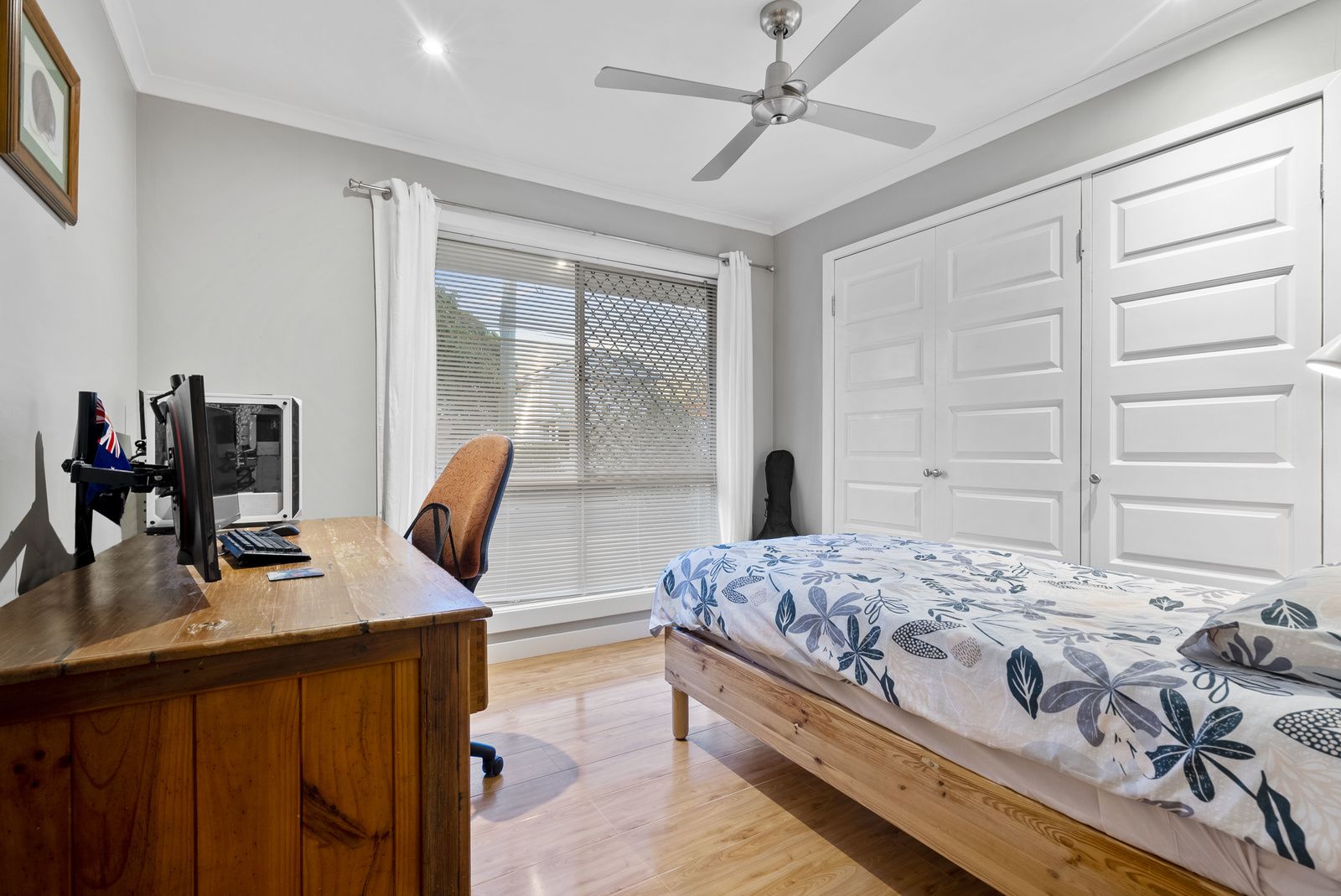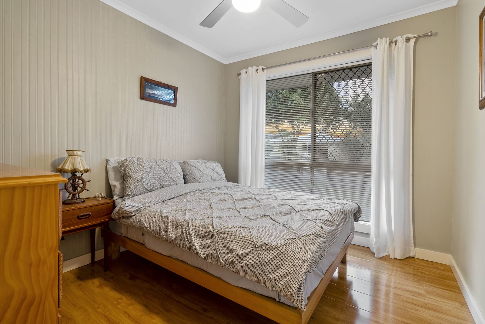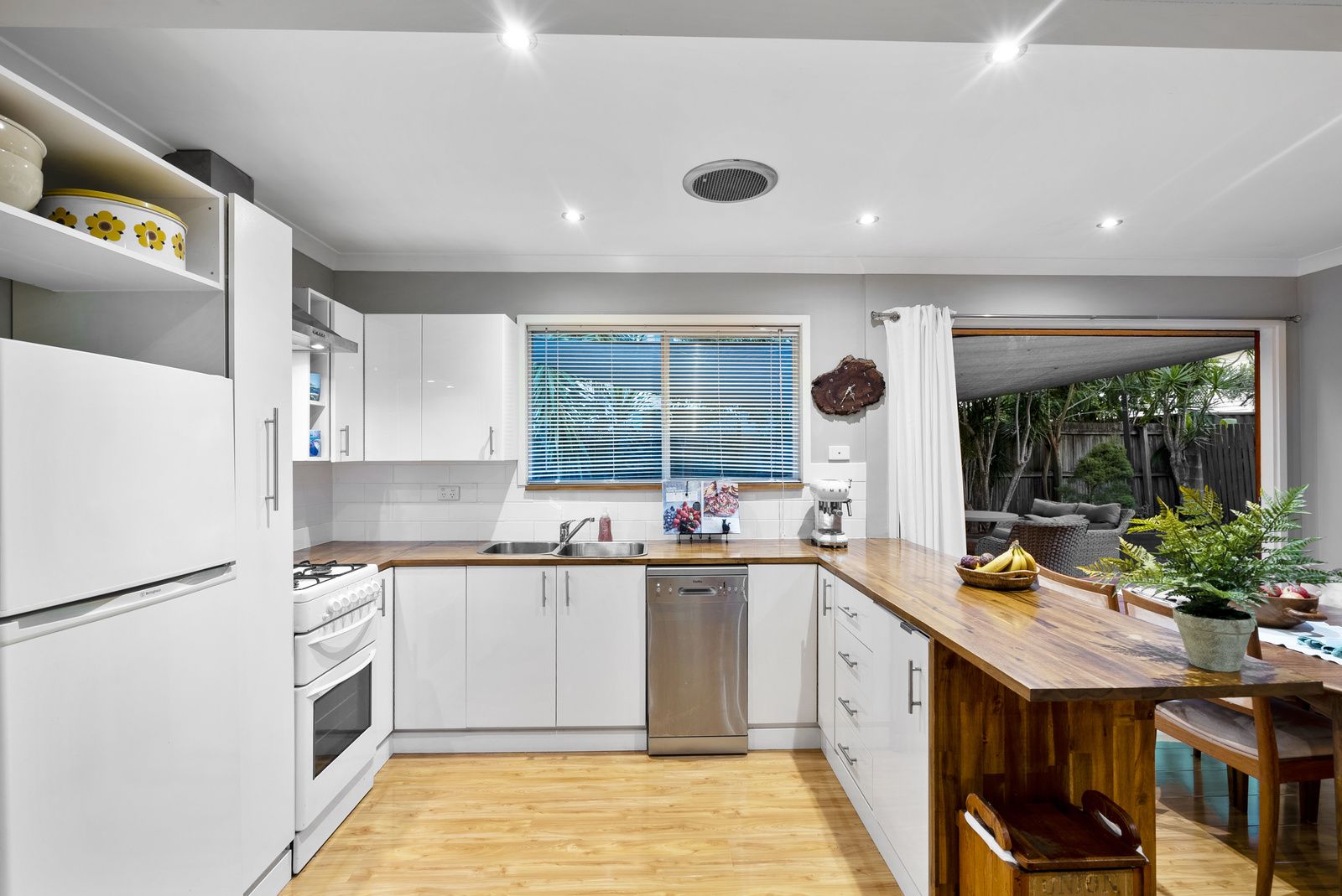 The well-appointed kitchen is the heart of the home, boasting timber benchtops, an electric cooktop, ample storage, and counter space. Flowing effortlessly between the indoor and outdoor living areas, this space is ideal for home-cooked meals and entertaining guests. The undercover outdoor entertaining area extends the living space, providing a relaxing retreat for alfresco dining or weekend barbecues.