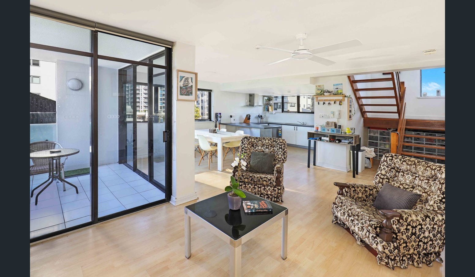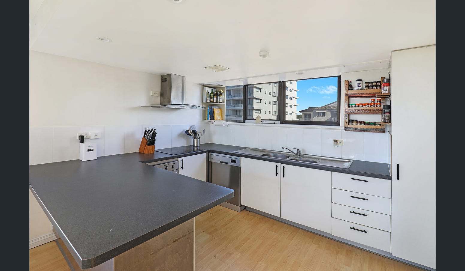 • Light filled open plan living and well-equipped kitchen